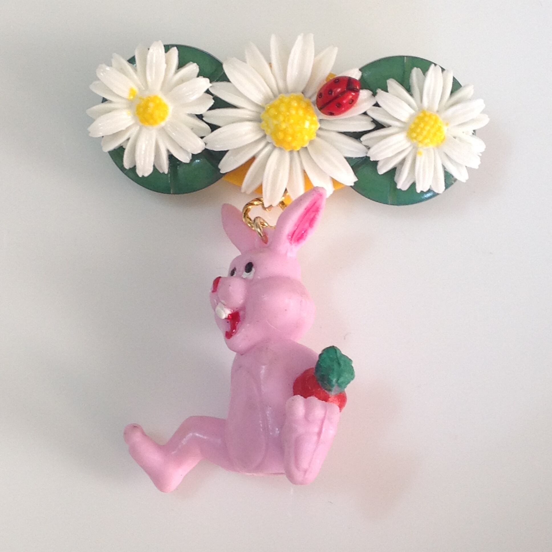 744 マーガレットとニンジンを持ったうさぎ ブローチ