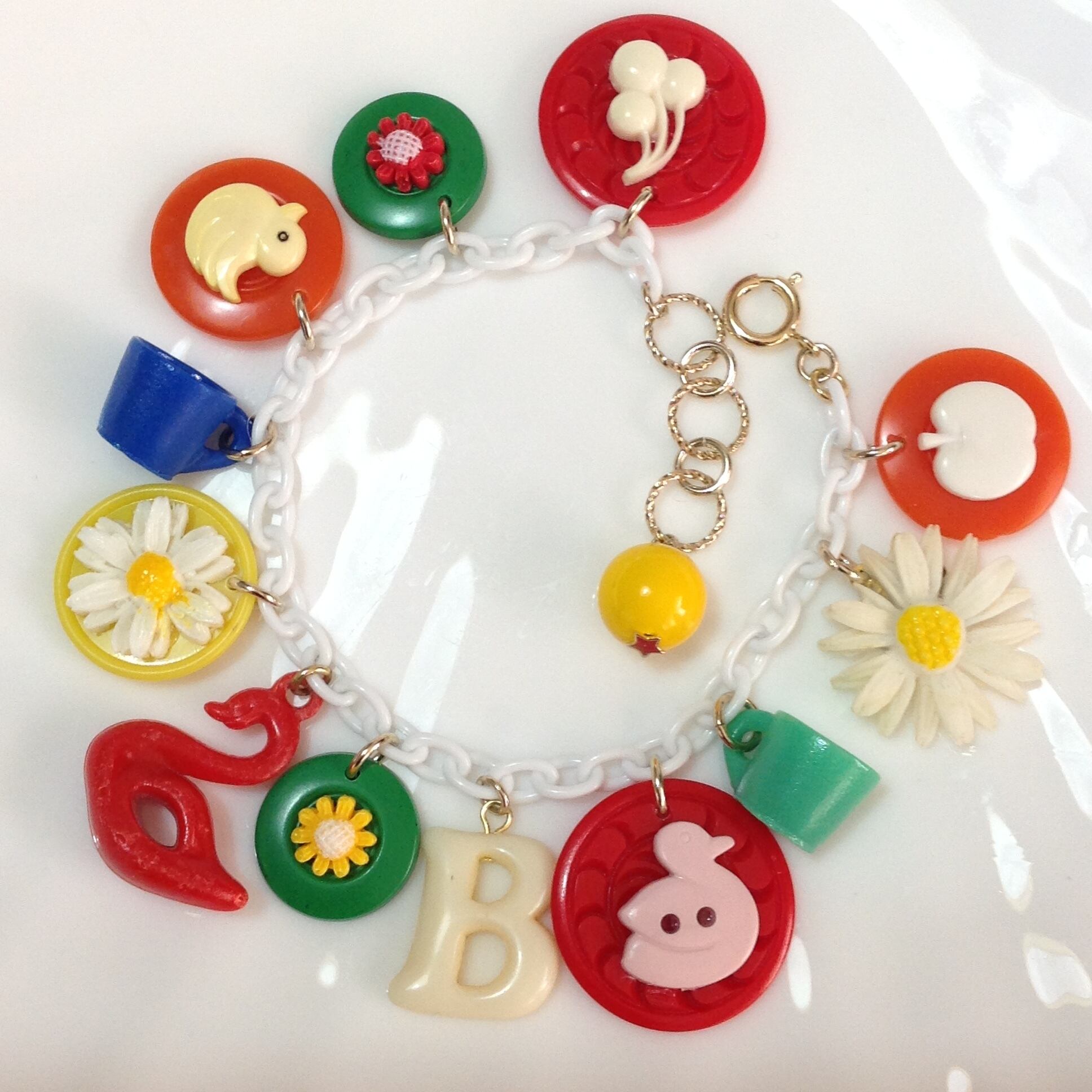 カラフルで質感愛らしいプラスチックチャームをいーっぱいつけたお腕飾り❤️