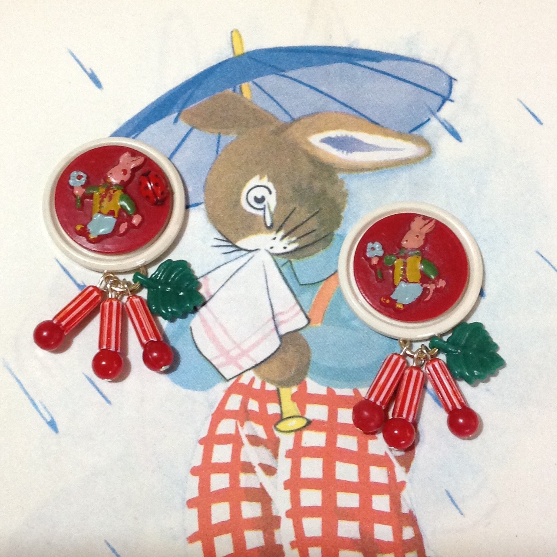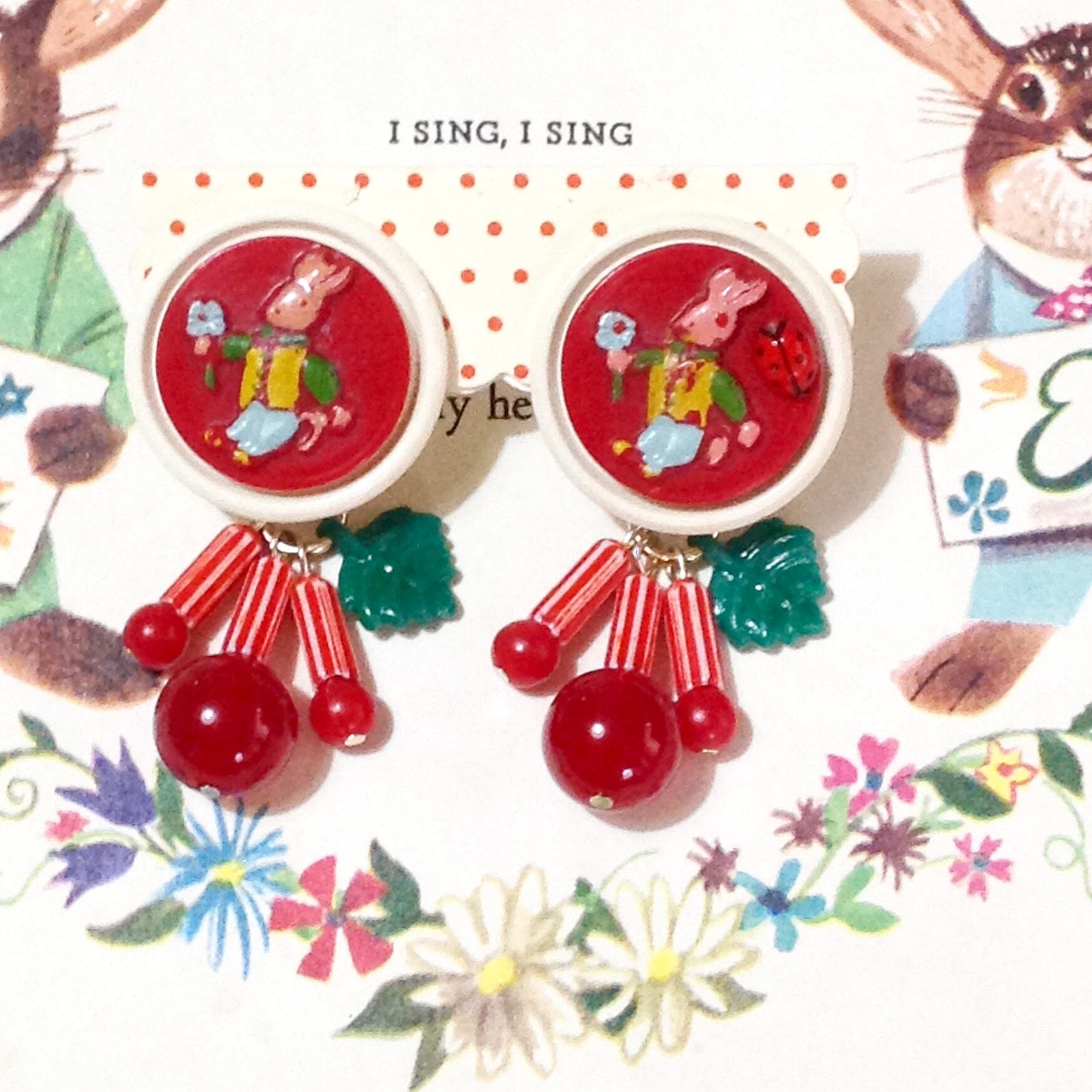 葉っぱのついた赤い実が揺れるお耳飾り❤️
