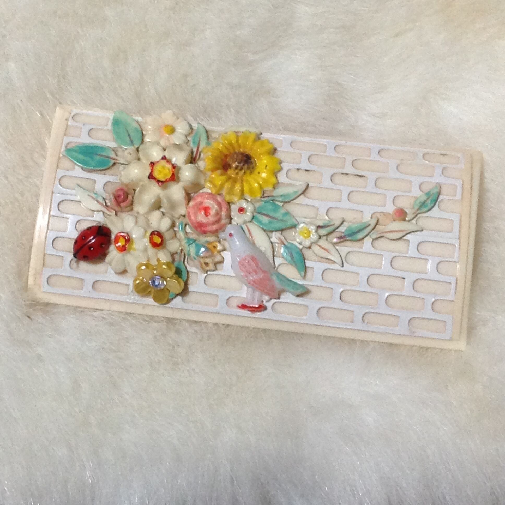 s004 鳥がいるお花のブローチ(帯飾り)