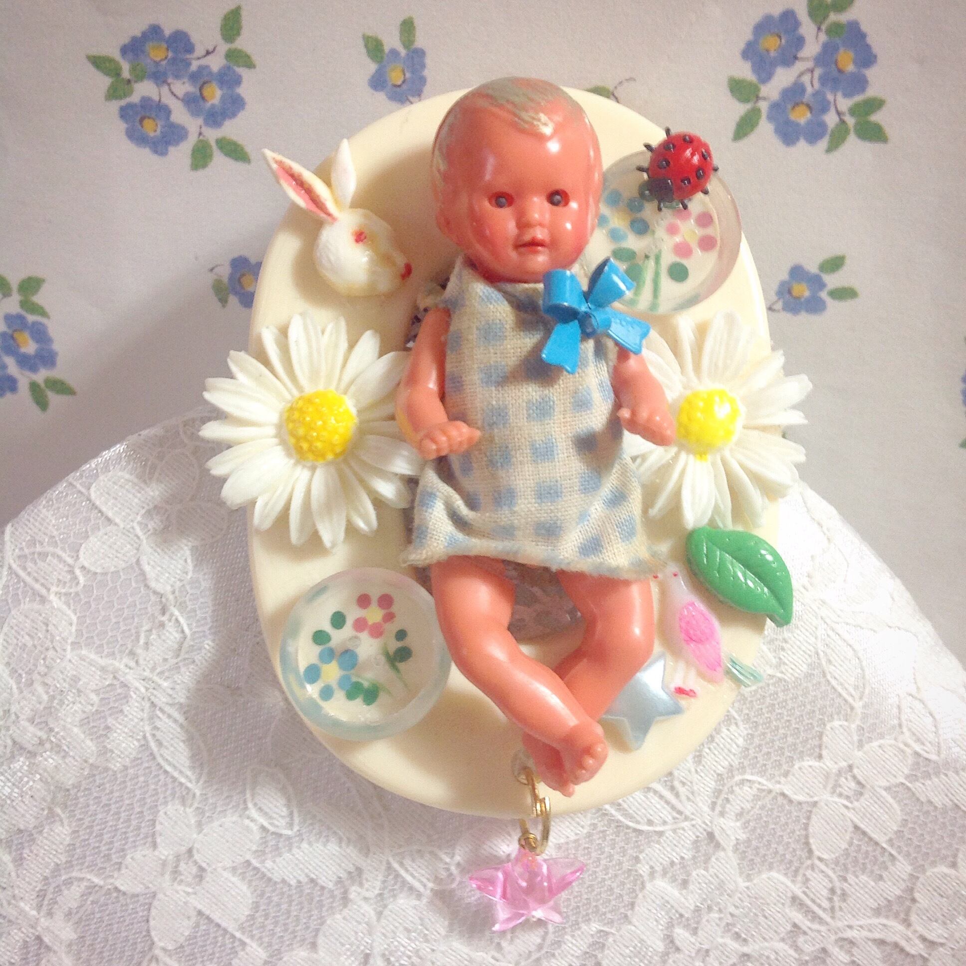 【素材】アメリカvintageドール/フランスvintageボタン/セルロイド/vintageプラスチックチャーム/メタル土台/メタルクリップ金具etc