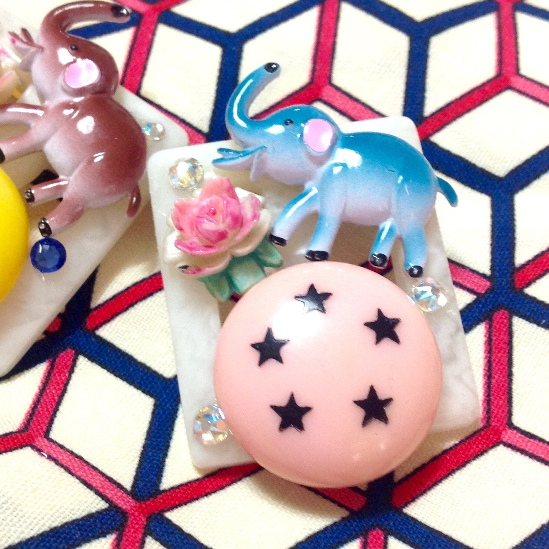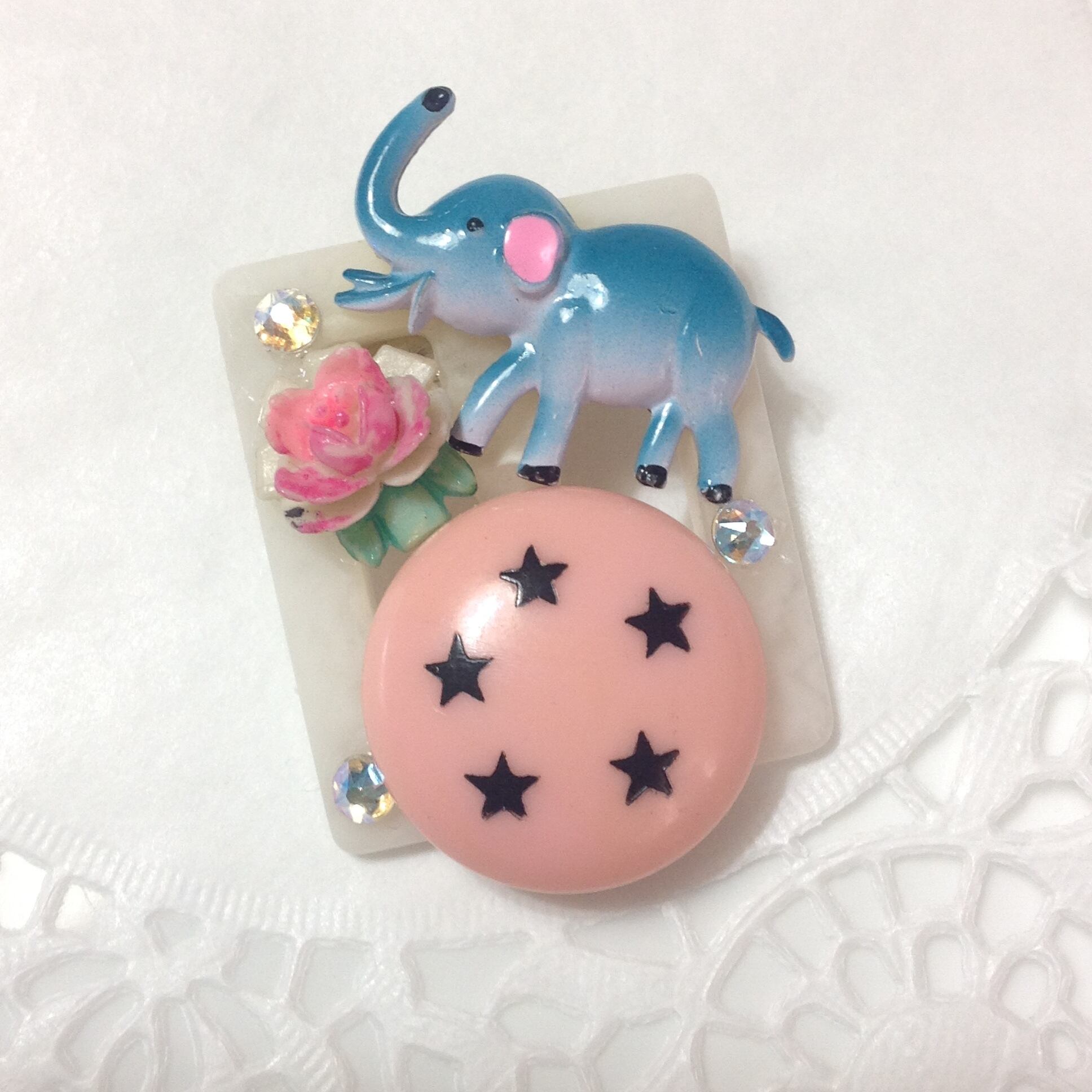 【素材】プラスチック土台/vintageメタル象パーツ/セルロイド薔薇/vintageプラスチック丸カボション/ラインストーン/メタルブローチ金具etc