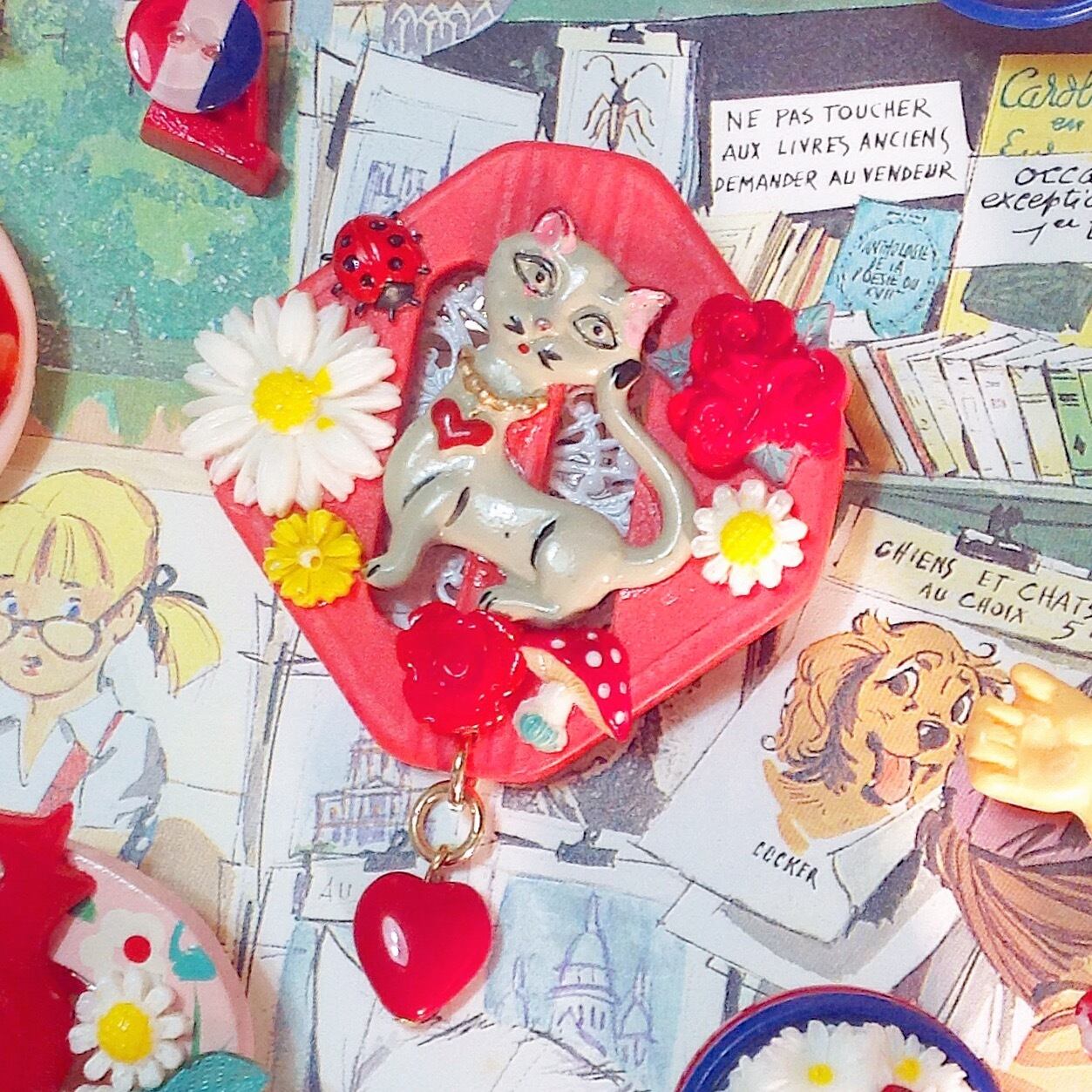 s076 アムールキャット❤️ブローチ(帯飾り)