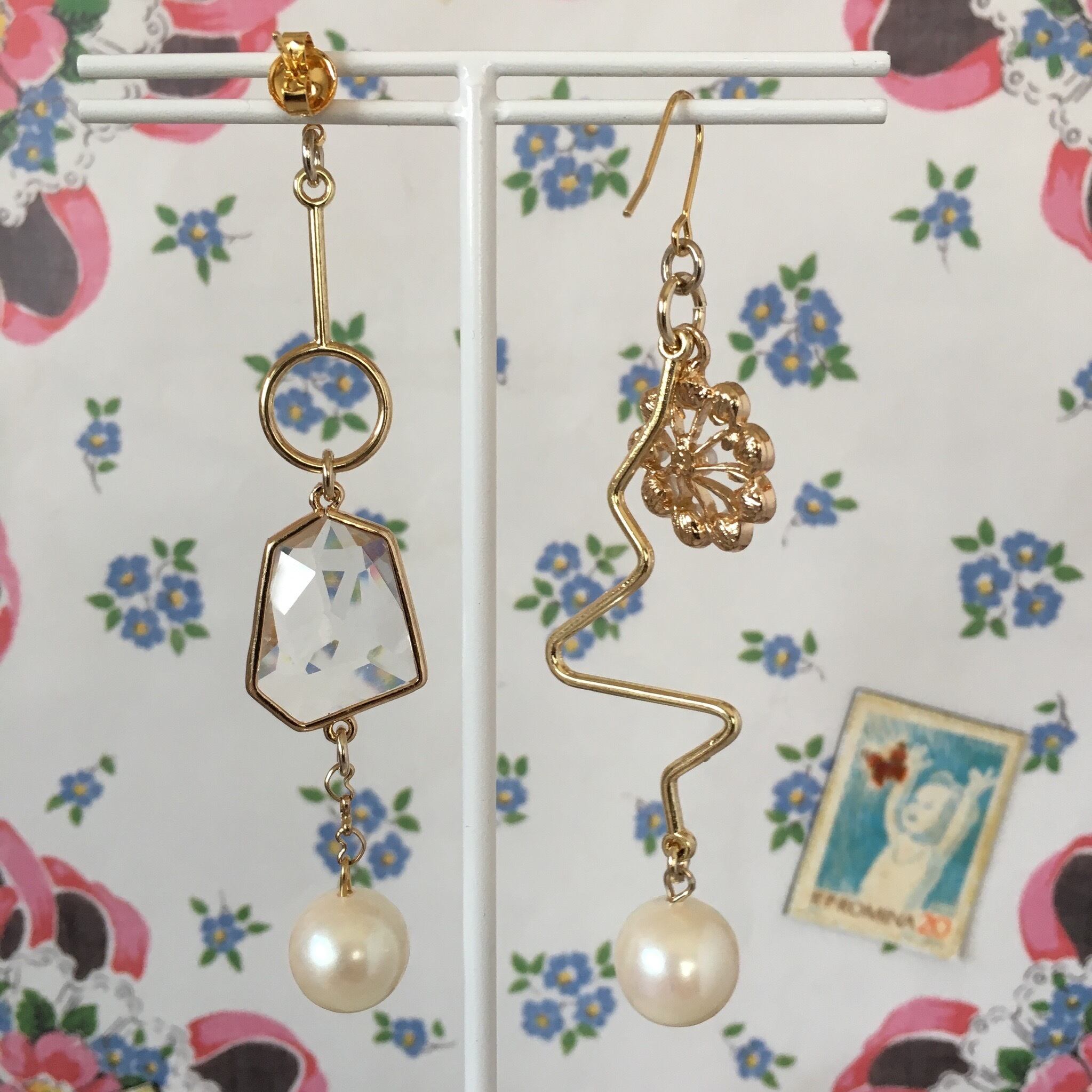 【素材】メタルクネクネコネクターパーツ/パール付きお花型チャーム/vintageプラスチックビーズ/メタルピアス金具etc