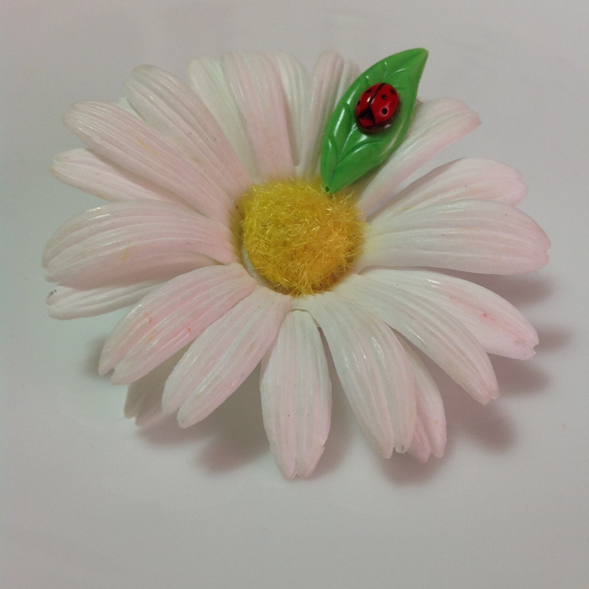 ヨーロッパvintageのブローチに葉っぱとテントウムシを付けて更に可愛くしました。