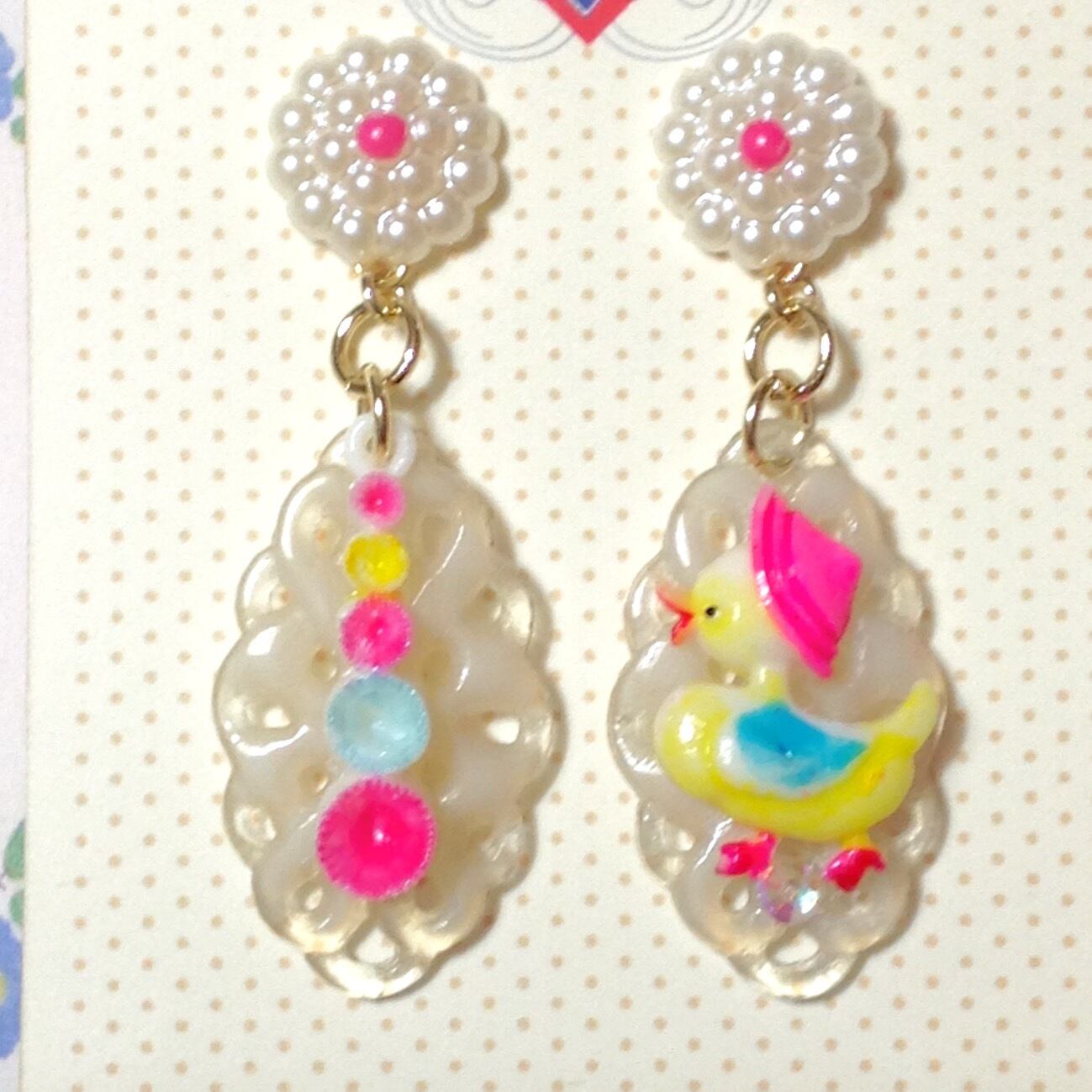 白を基調とした淡いパステルカラーが愛らしいお耳飾り。