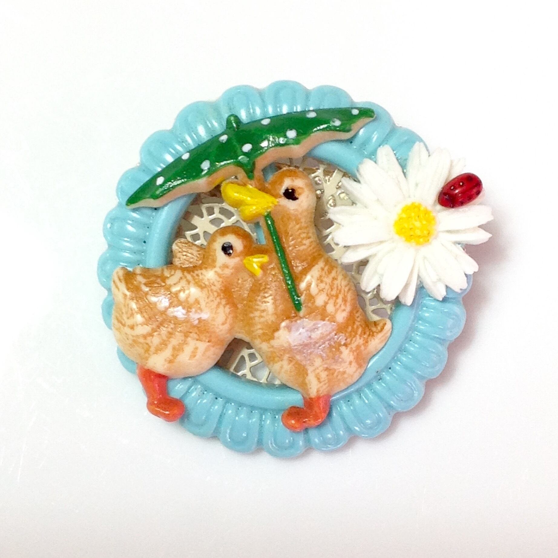 s277 傘をさしたあひるちゃんとマーガレット ブローチ