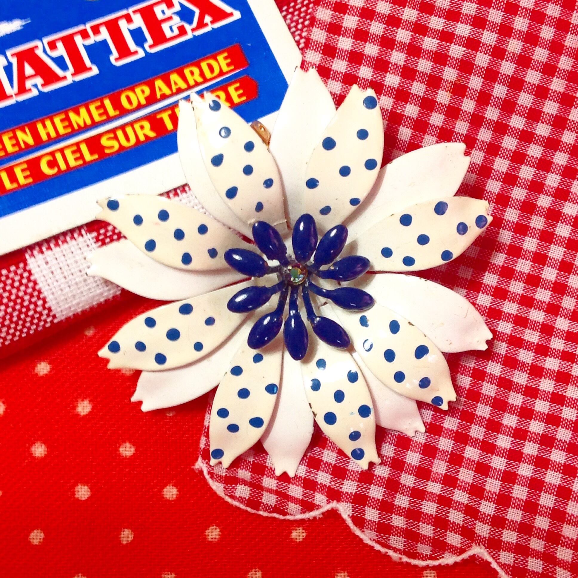 m019 水玉のお花 ビンテージブローチ