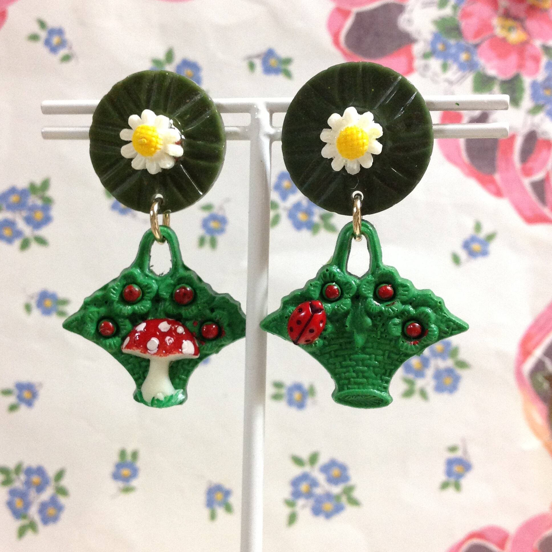 s336 グリーンカゴにマッシュルーム ピアス