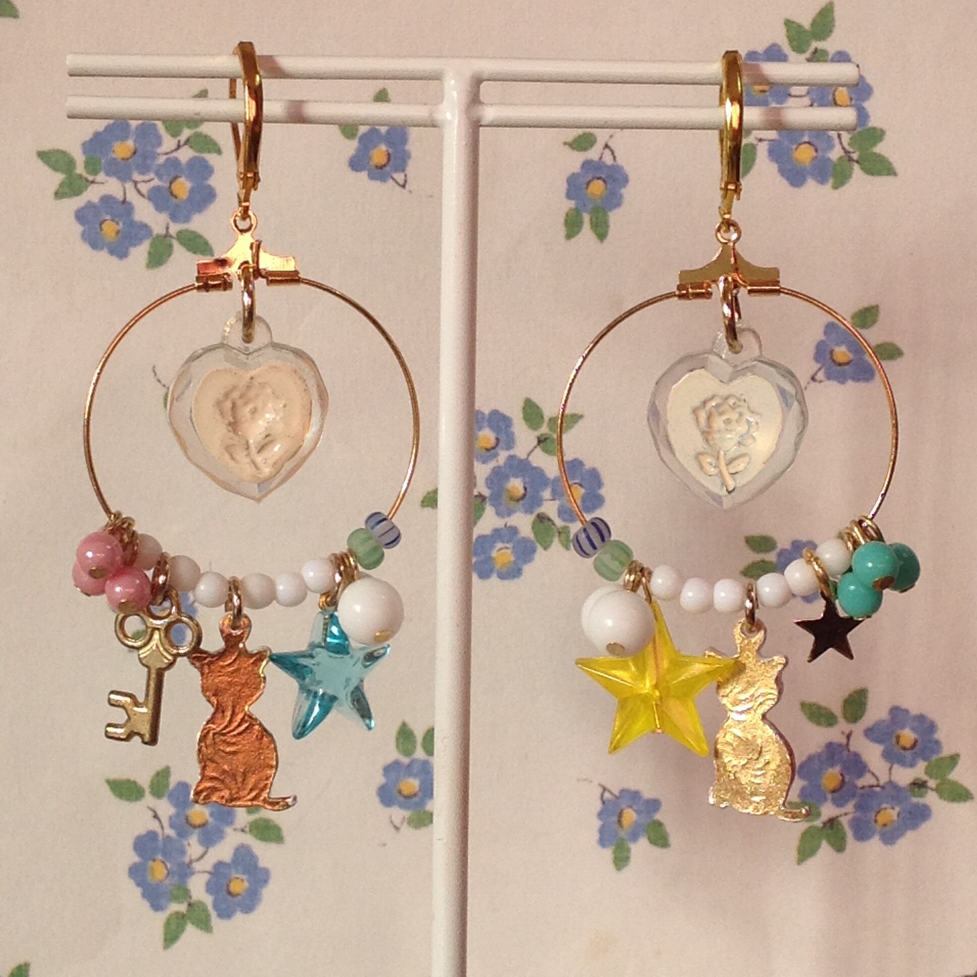 【素材】vintageプラスチック薔薇チャーム/現代プラスチックビーズ/vintageメタル猫さんチャーム/メタルピアス金具etc