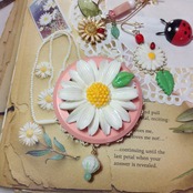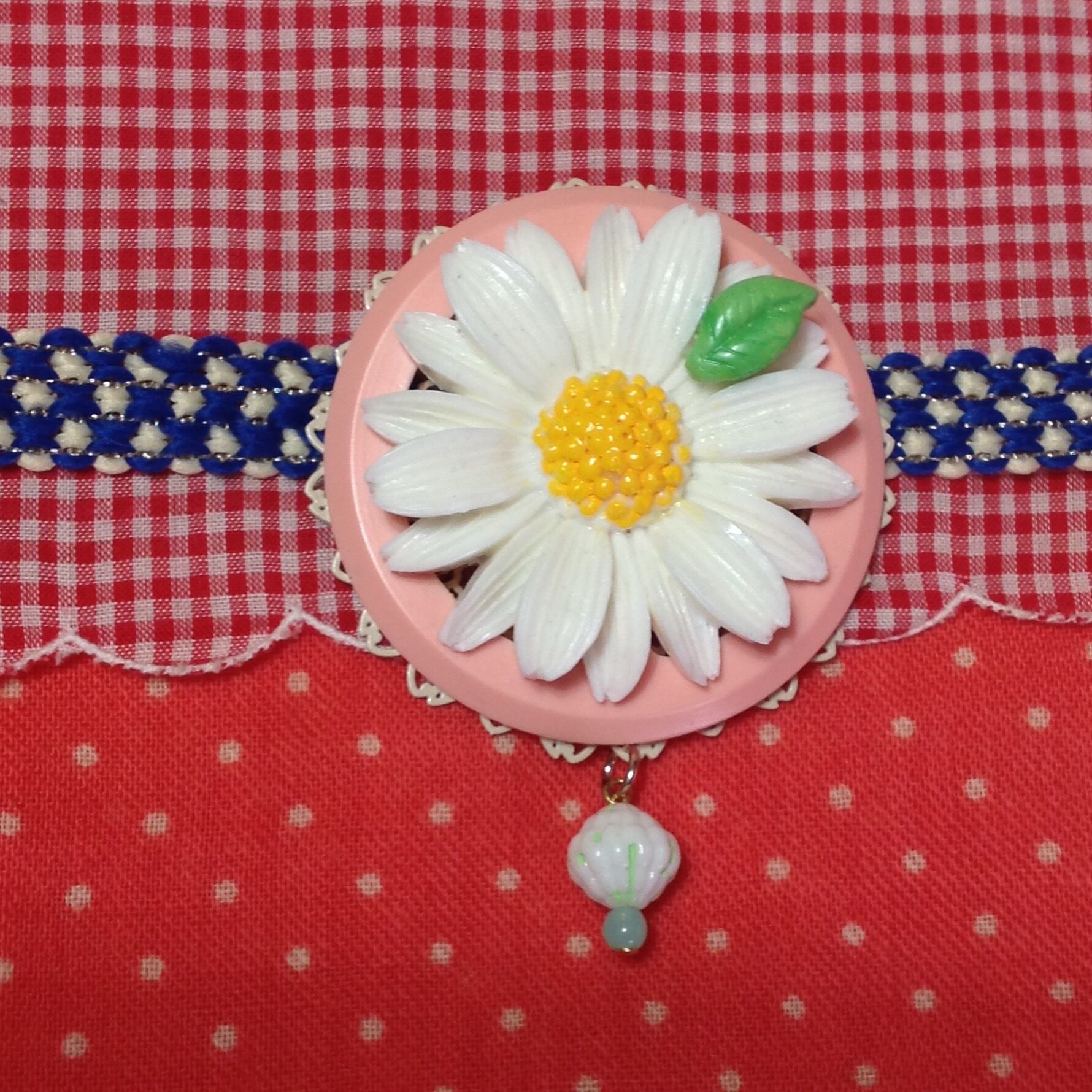 s403 ピンク土台のマーガレット ブローチ(帯飾り)