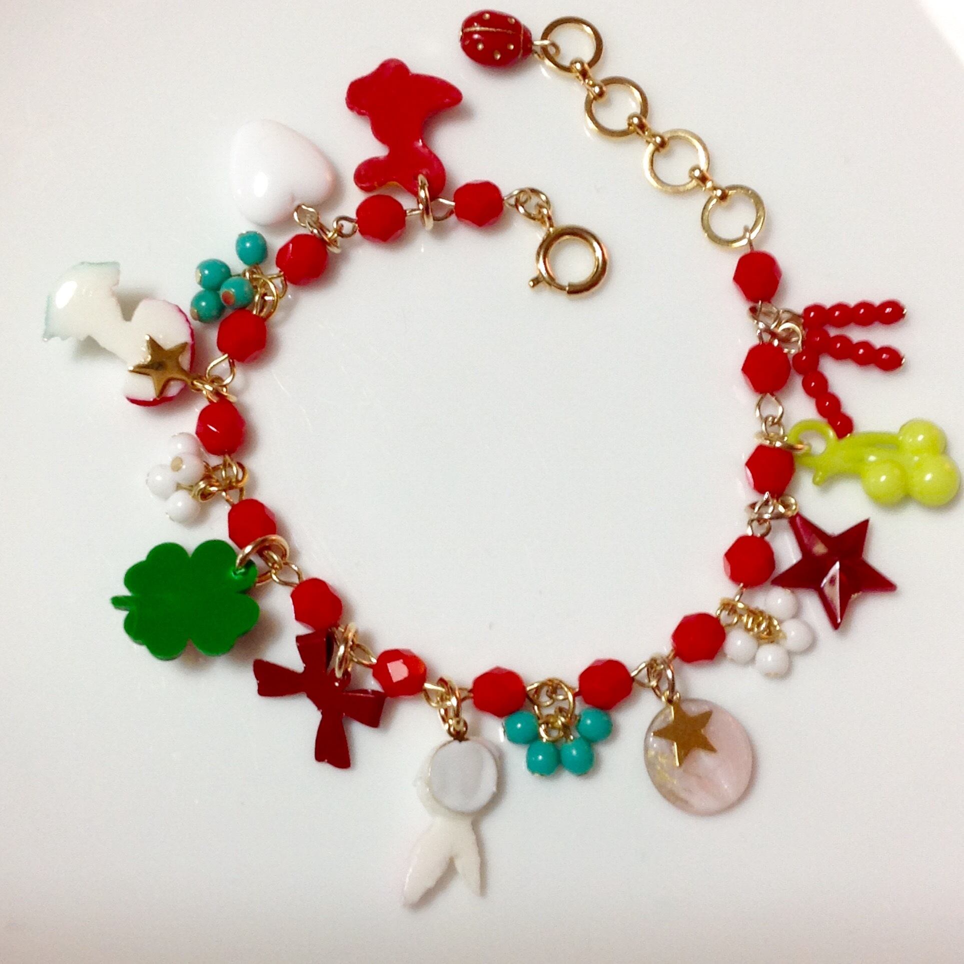 s418 チャームいっぱい♡赤いブレスレット