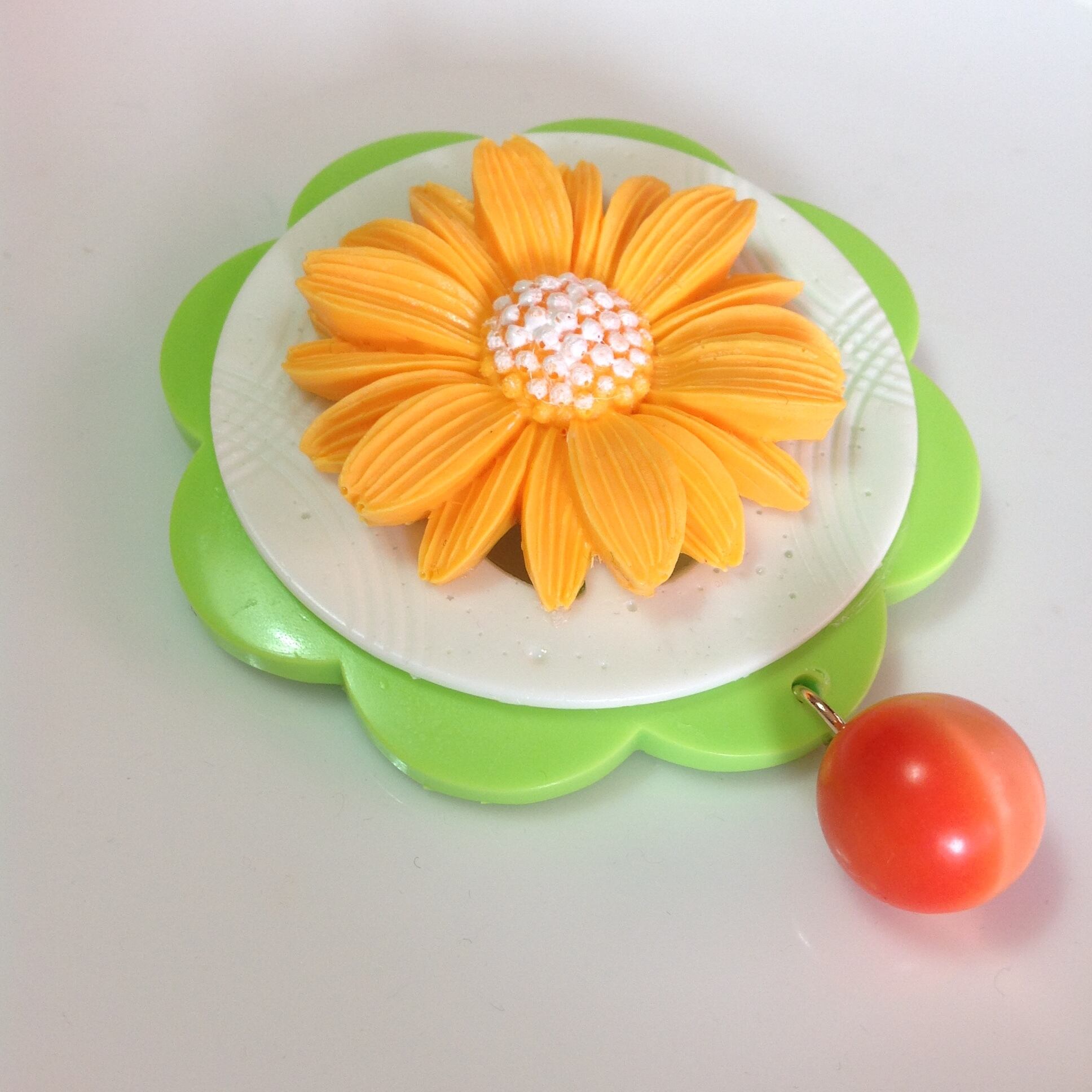 キミドリとオレンジ、白の色合わせのタンバリンスタイルのブローチ、できました❤️