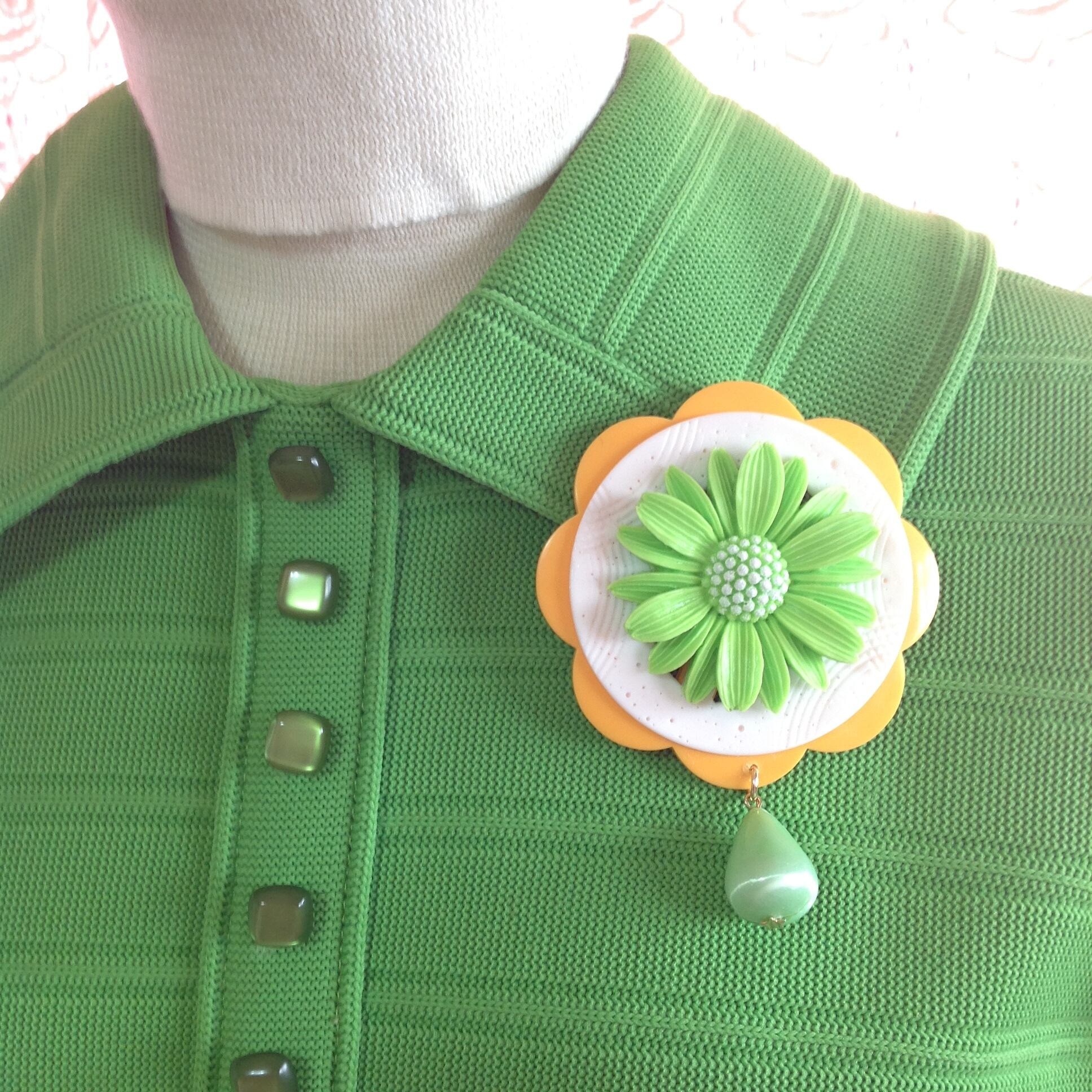 s507 メロングリーンのマーガレット ブローチ(帯飾り)