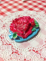 s539 ブルー土台の赤い薔薇 ブローチ(帯飾り)