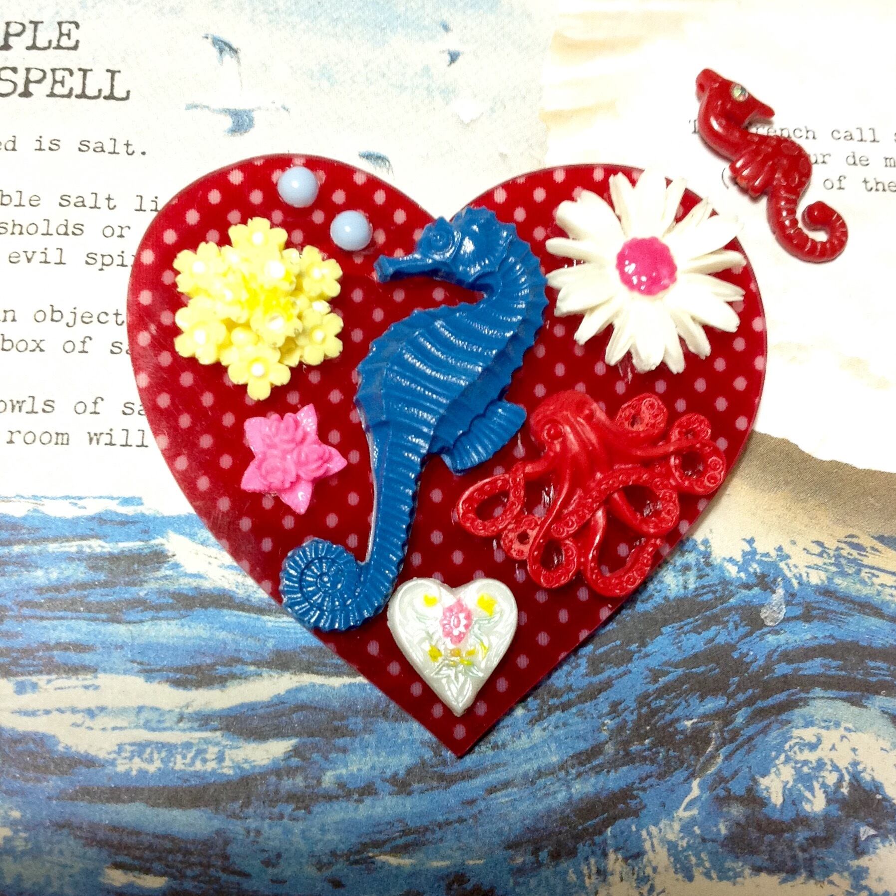 s563 赤い水玉ハートのブローチ(帯飾り)