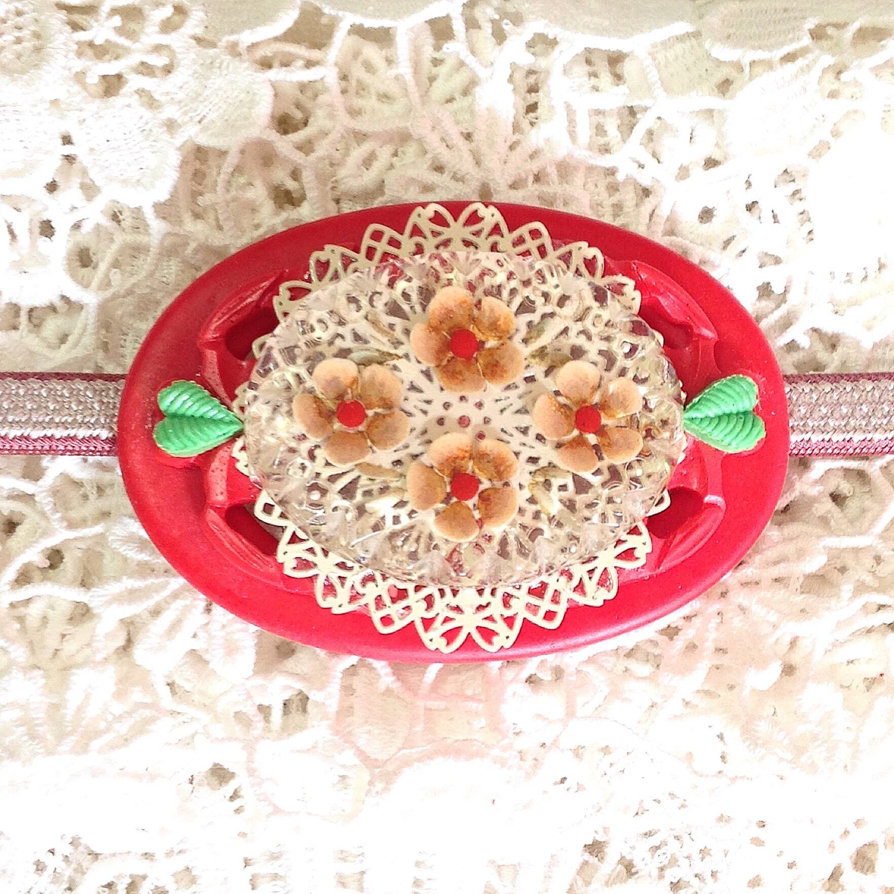 s578 赤い花壇のパンジー 帯飾り(ブローチ)