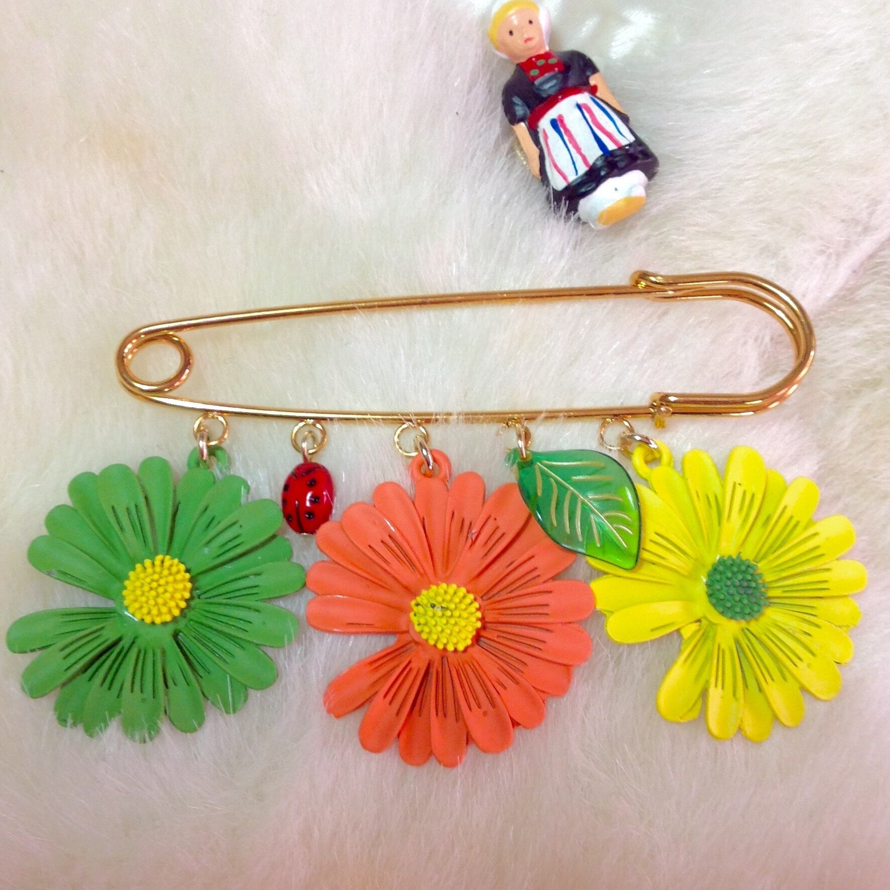 レトロ 3色のマーガレットのショールピン
