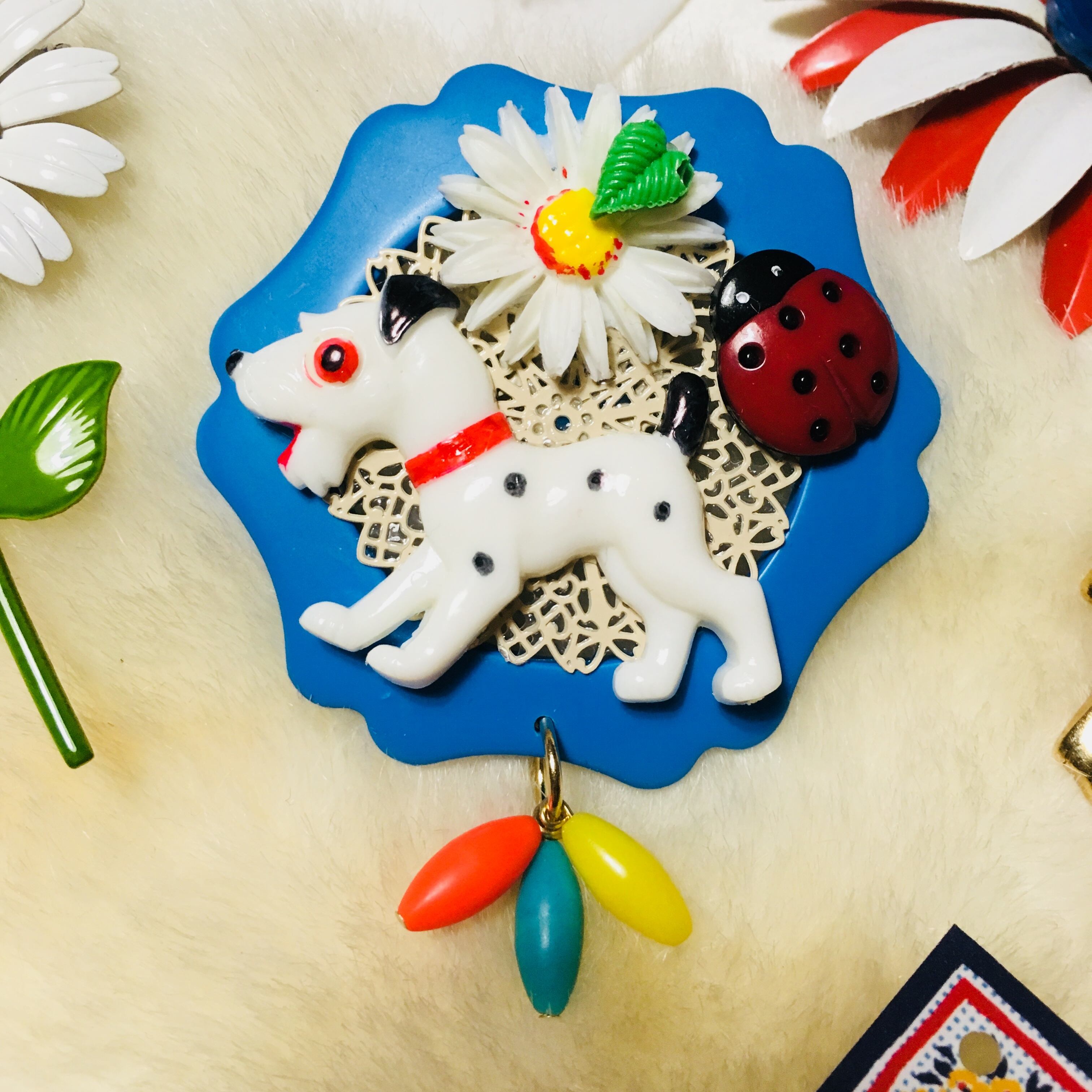 s642 ダルメシアンとマーガレット ブローチ