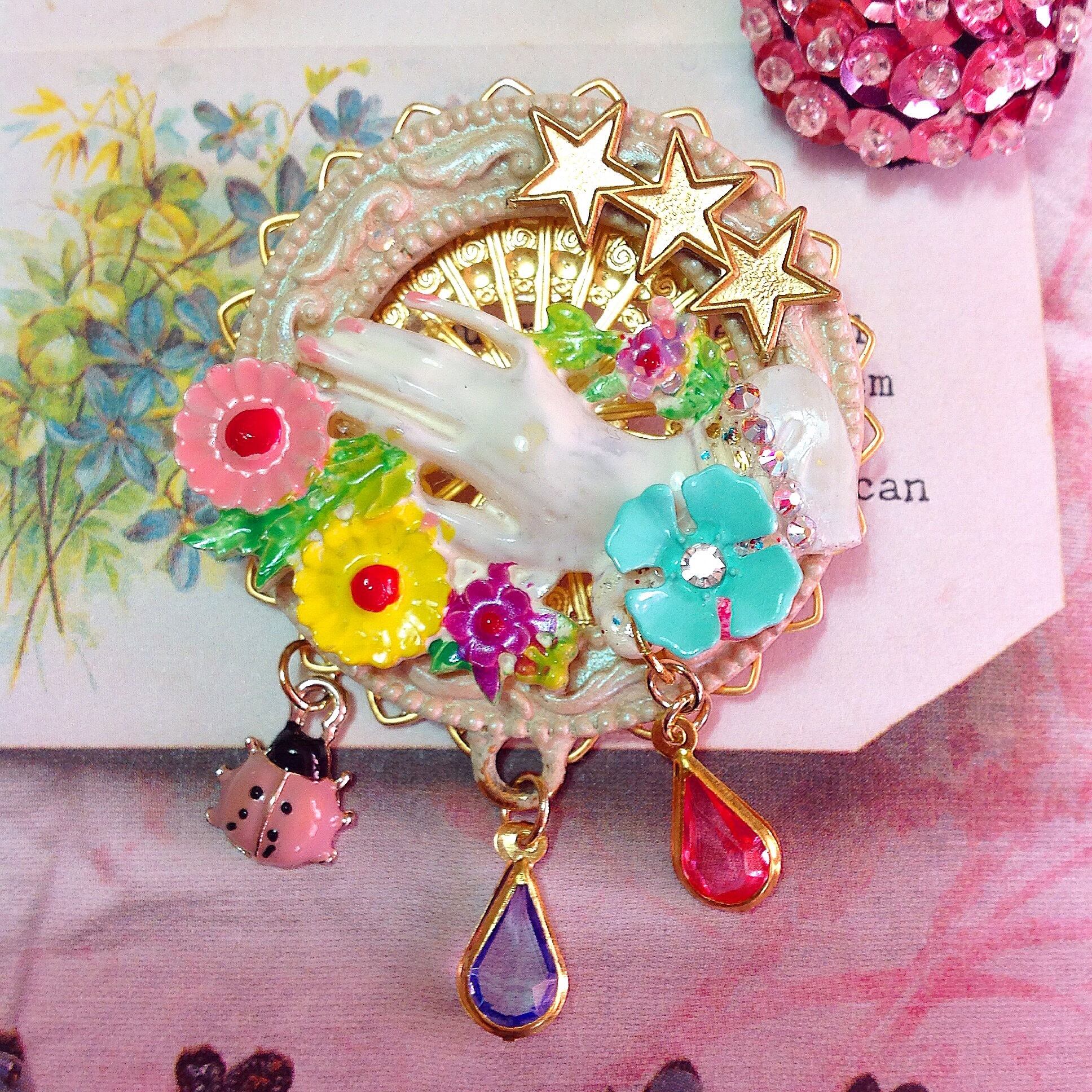 可愛らしいコラージュを施したブローチです。