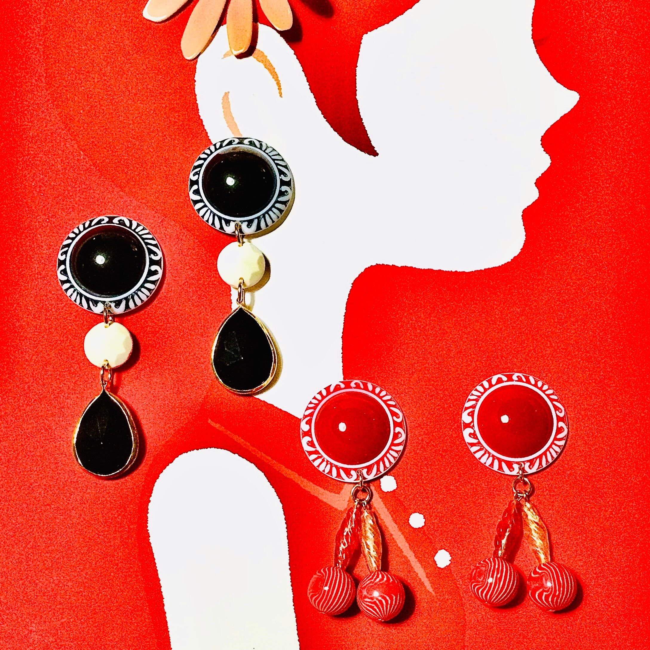 【素材】vintageプラスチックカボション/チェコガラスロングビーズ/vintageプラスチックビーズ/メタルイヤリング金具etc