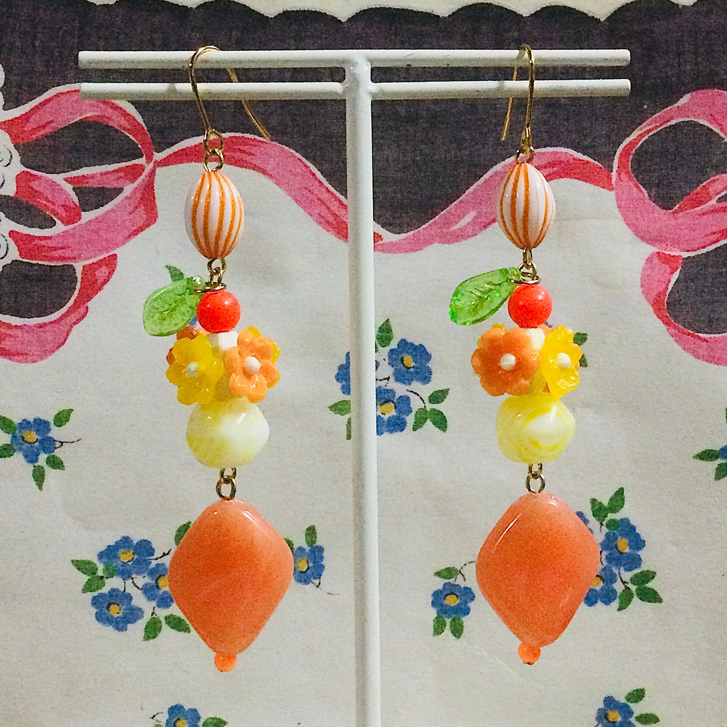 s693 お花ドロップピアス オレンジ味