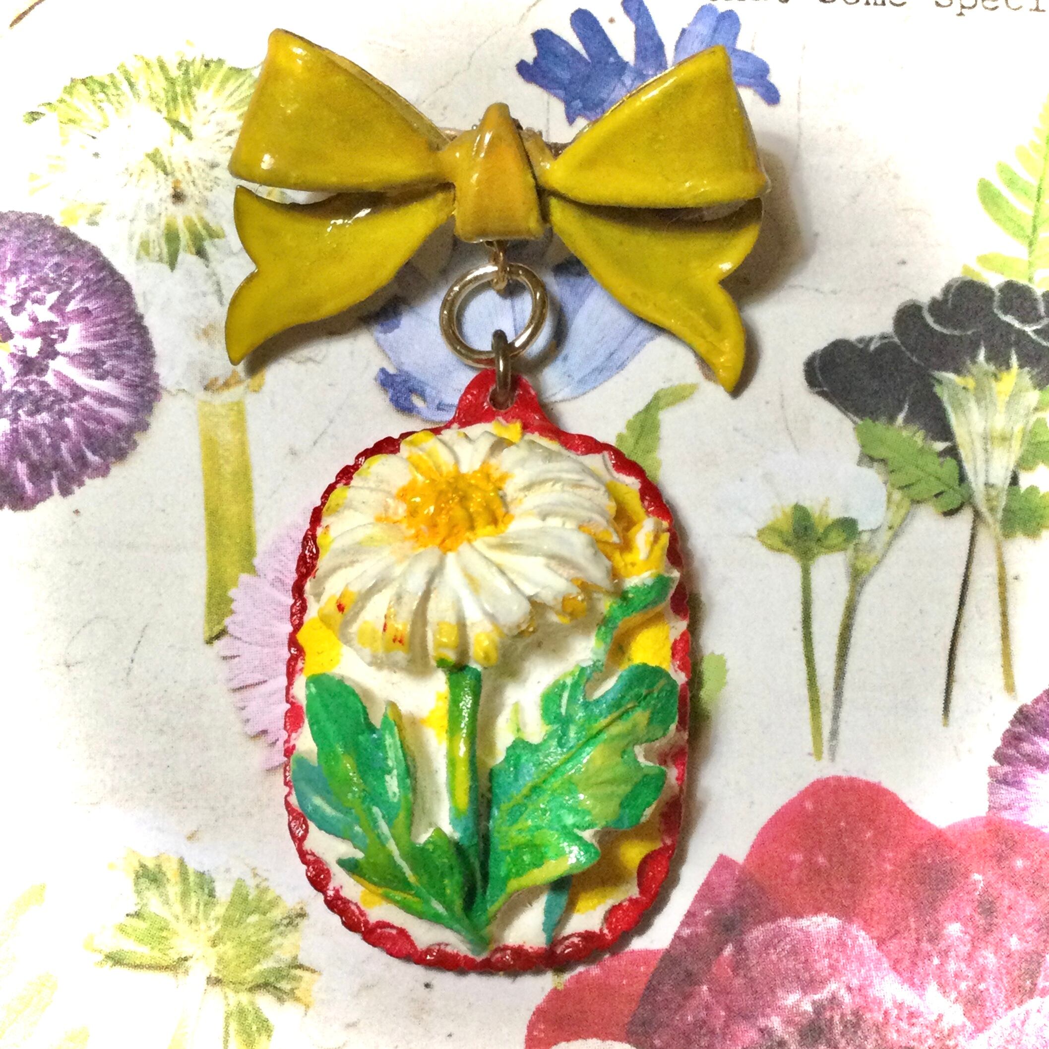 s705 雛菊と黄色いおリボン ブローチ