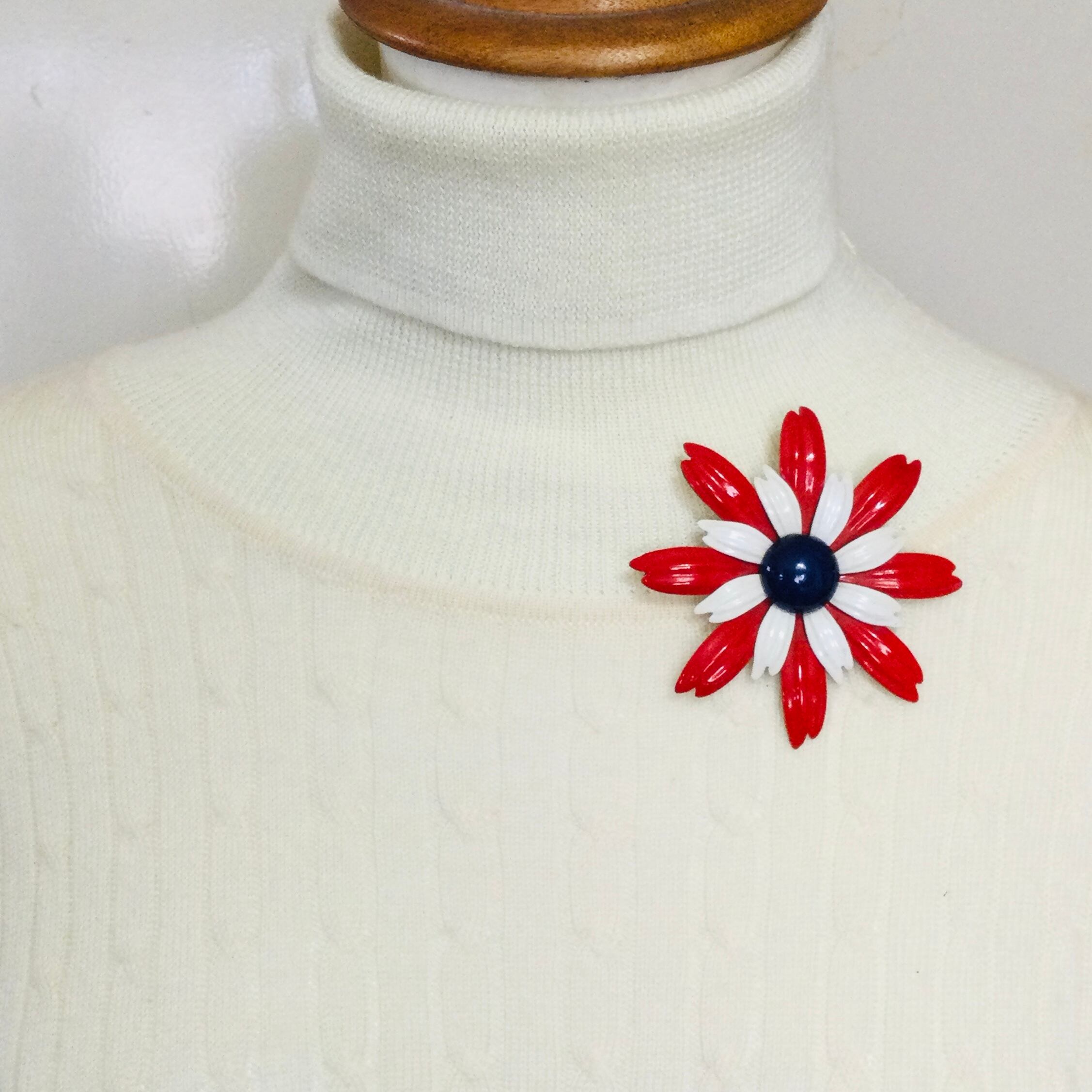 m047 トリコロールのお花 vintageブローチ