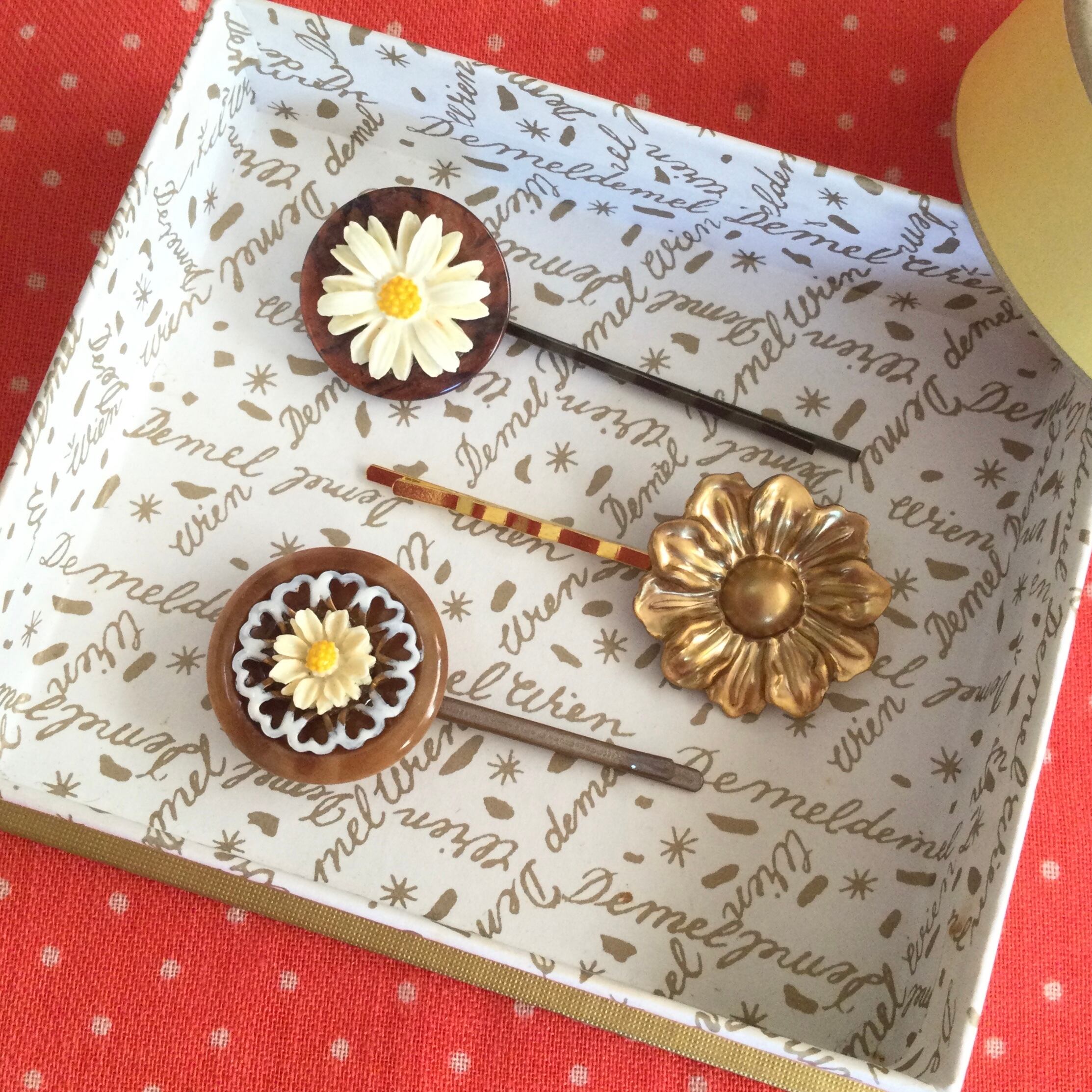 【素材】フランスvintageプラスチックボタン/セルロイド/メタルお花パーツ/メタルヘアピン金具etc