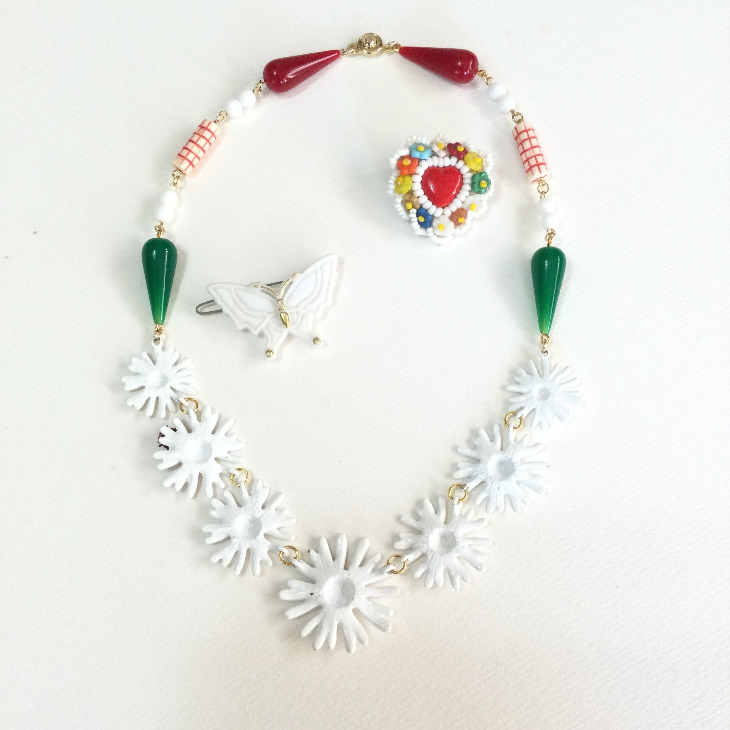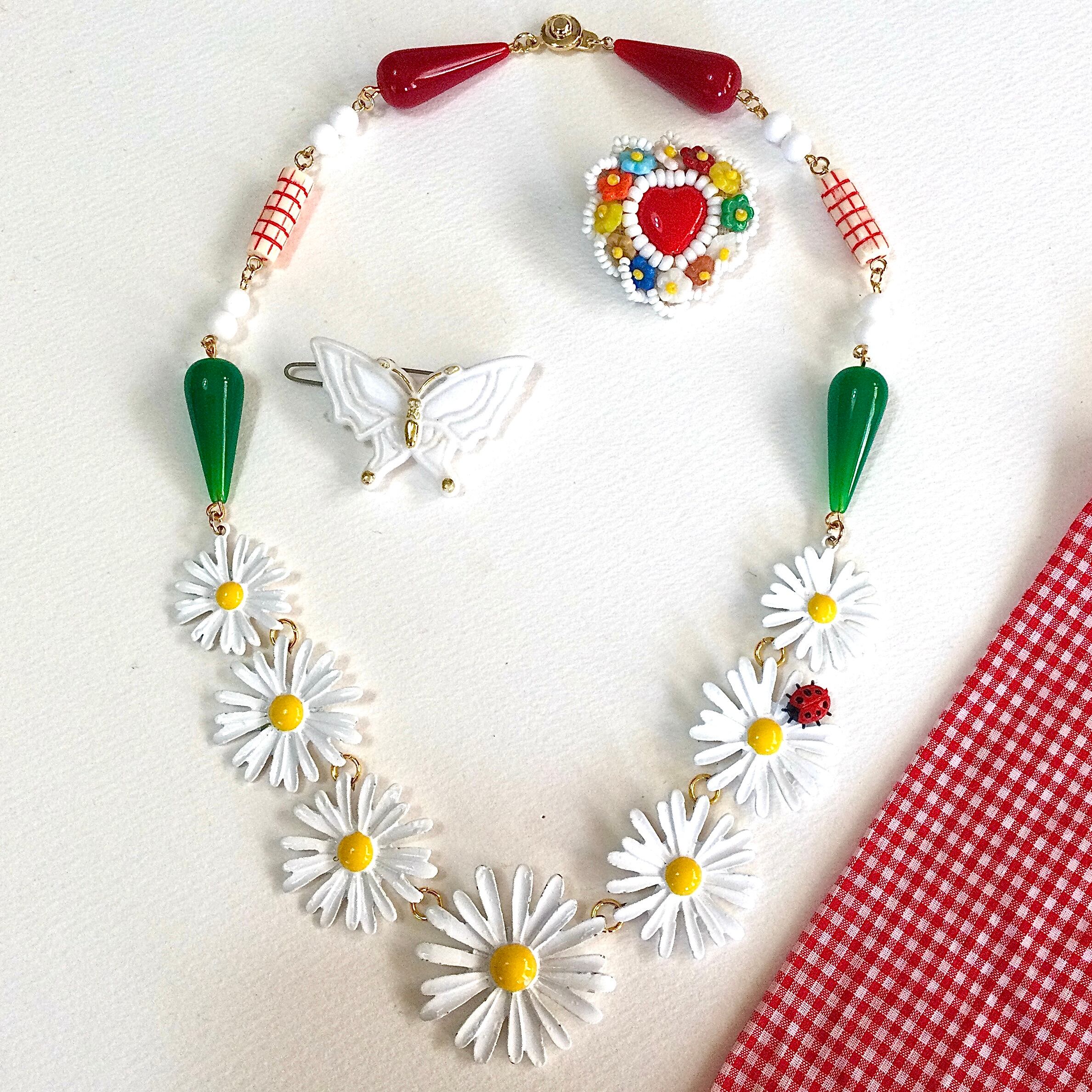 マーガレットが7輪並んだ「レトロかわいい」ネックレス。