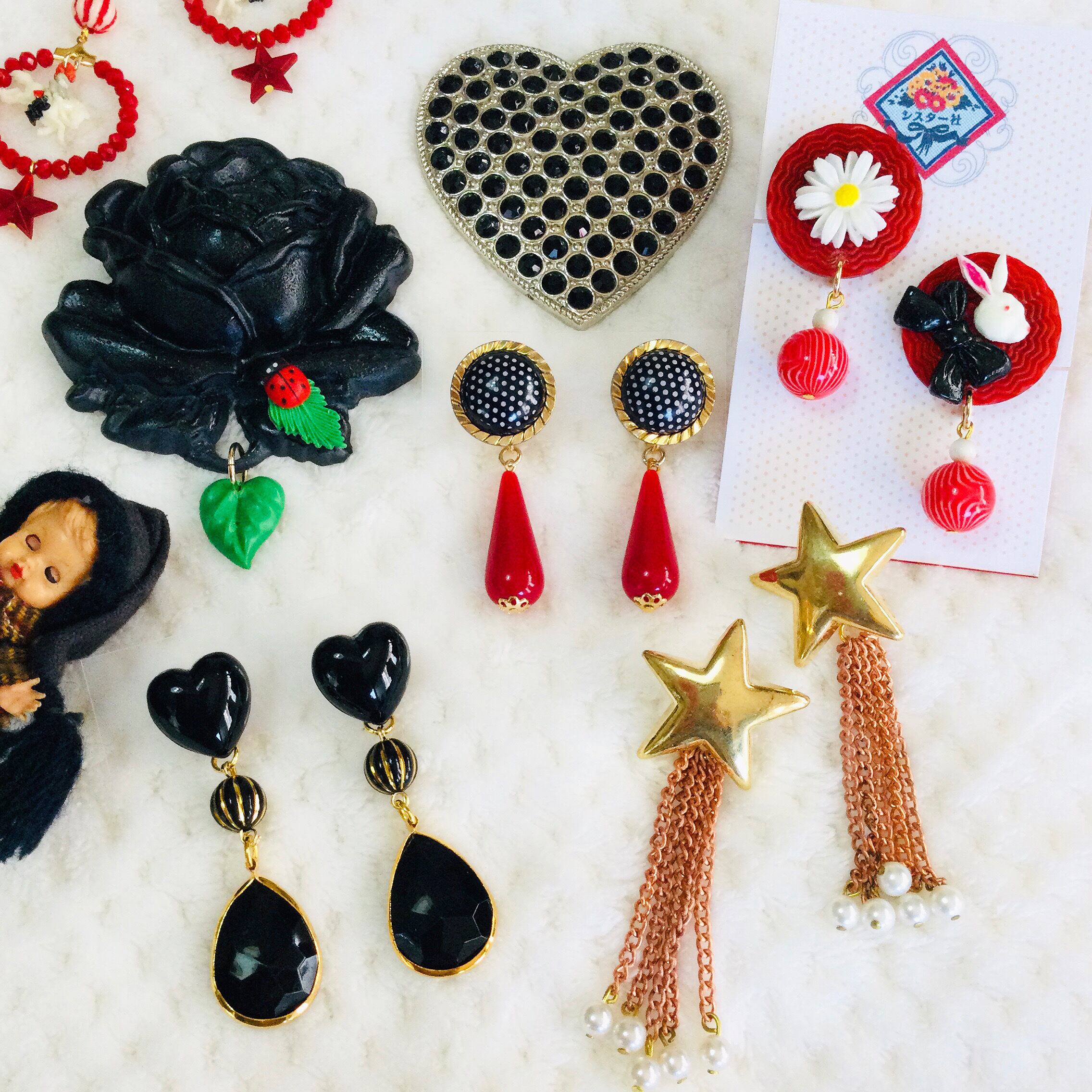 【素材】vintageプラスチック/vintageガラスビーズ/メタルイヤリング金具etc