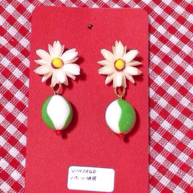 ボリュームのあるvintageのお花のピアス。お花も、ビーズもレアなものです。
