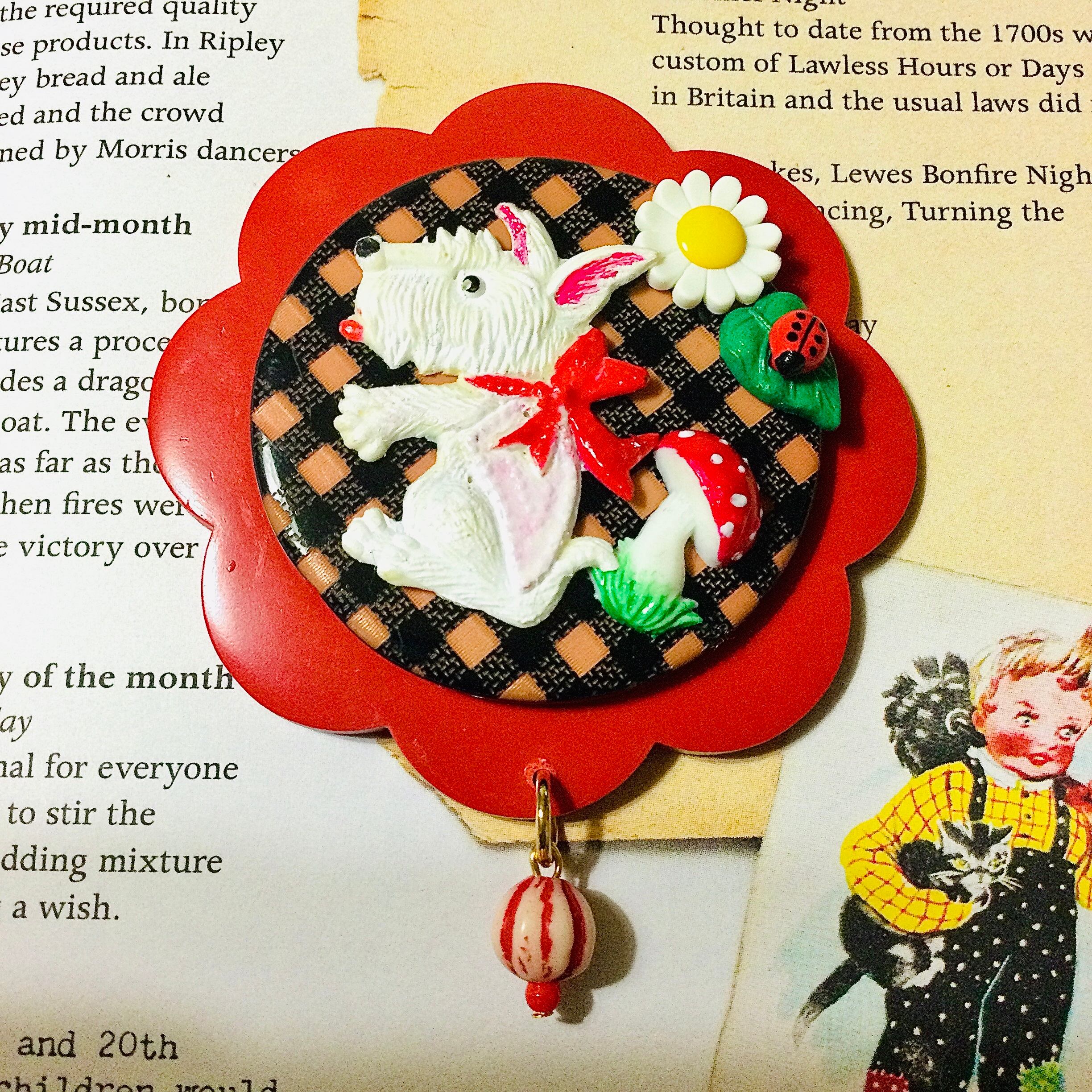 白いテリアくんが主役のブローチ。