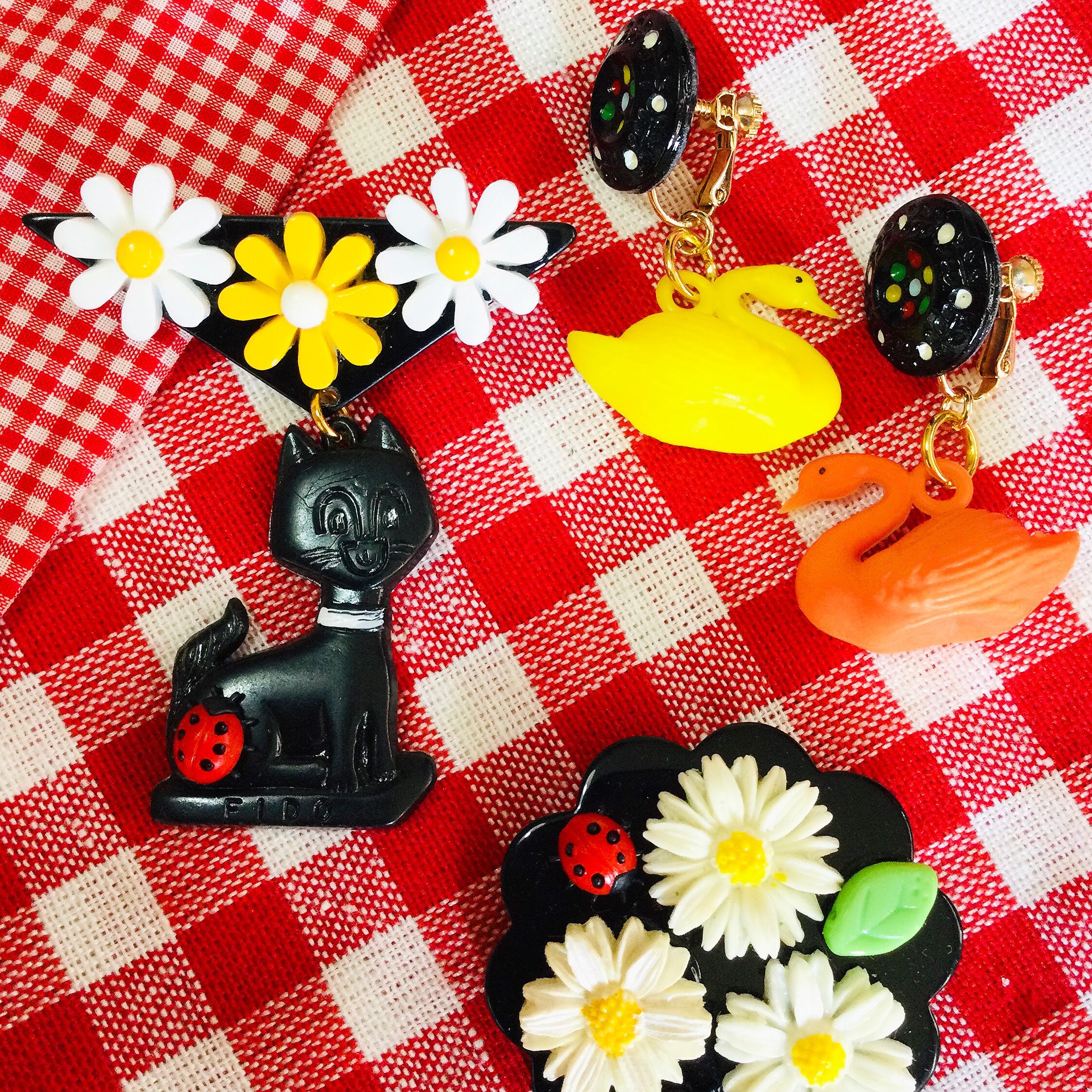 【素材】フランスvintageプラスチック猫/プラスチックパーツ/メタルブローチ金具etc