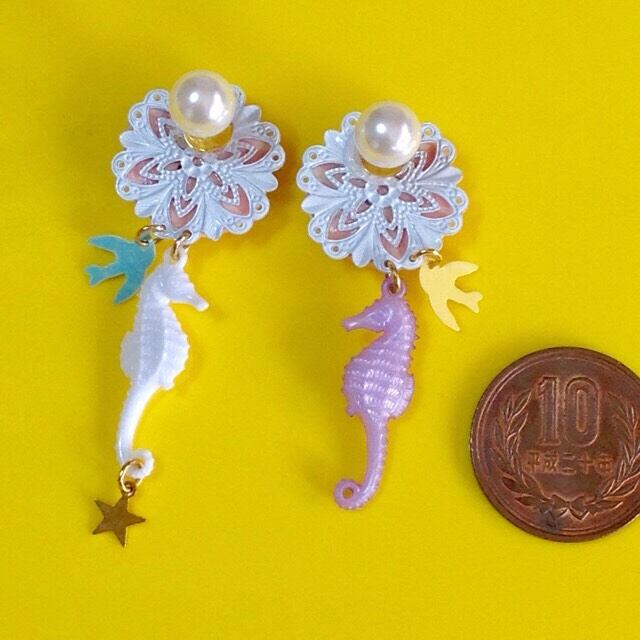 すこしふしぎな生き物タツノオトシゴの繊細な造りのピアス❤️