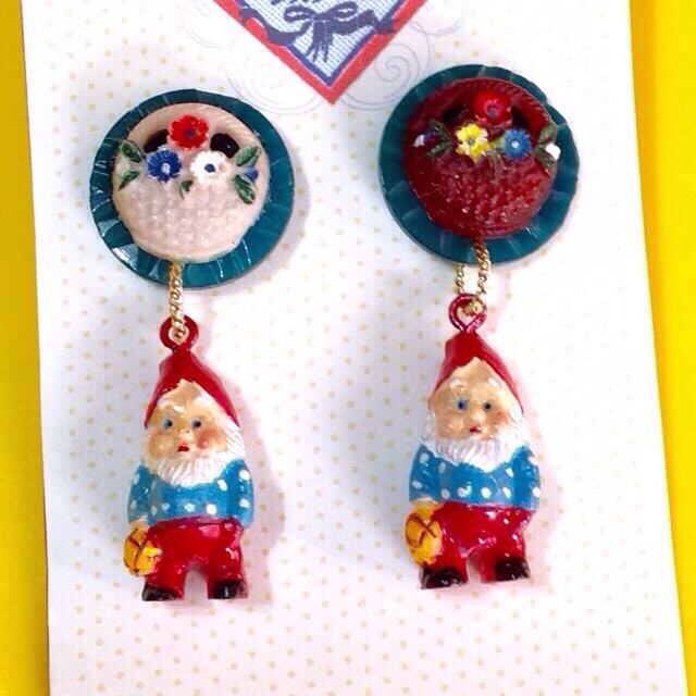 花かごを運ぶふたごの小人さんたちのピアス❤️