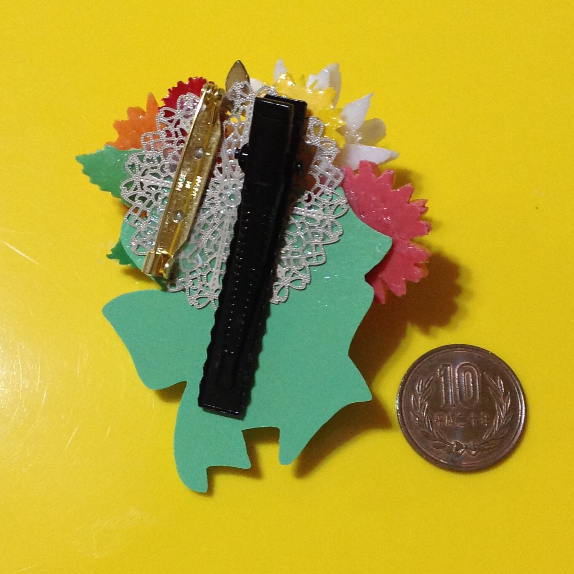 金具がついてるので、ぱっちん式の帯飾りとしても。