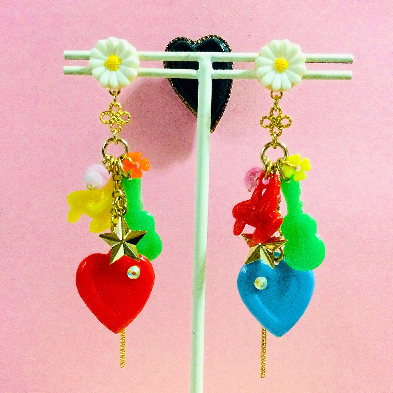 【素材】vintageプラスチック/メタルチェーン/メタル星チャーム/ラインストーン/メタルピアス金具etc