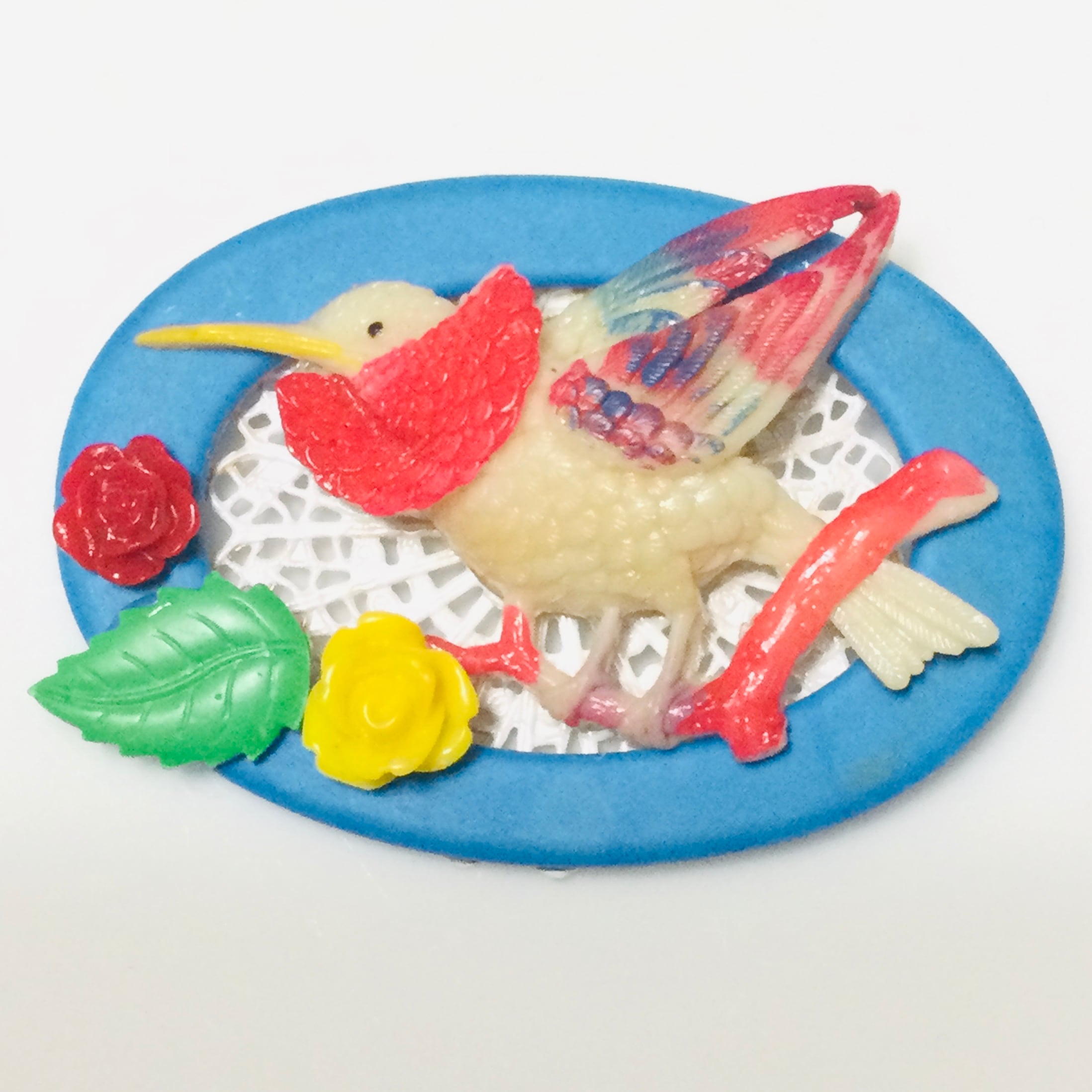 s869 セルロイドの鳥 と薔薇ブローチ(帯飾り)