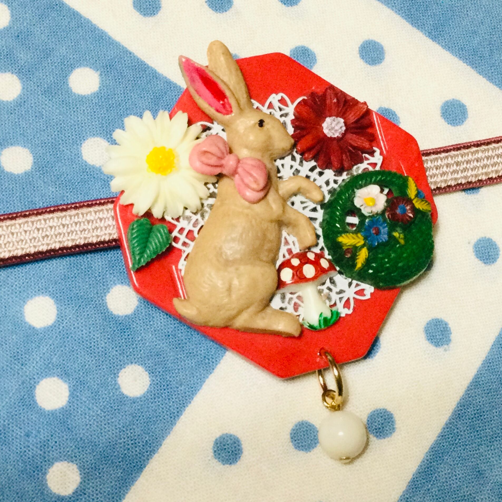 s886 うさぎさんのお花摘みピクニック ブローチ(帯飾り)