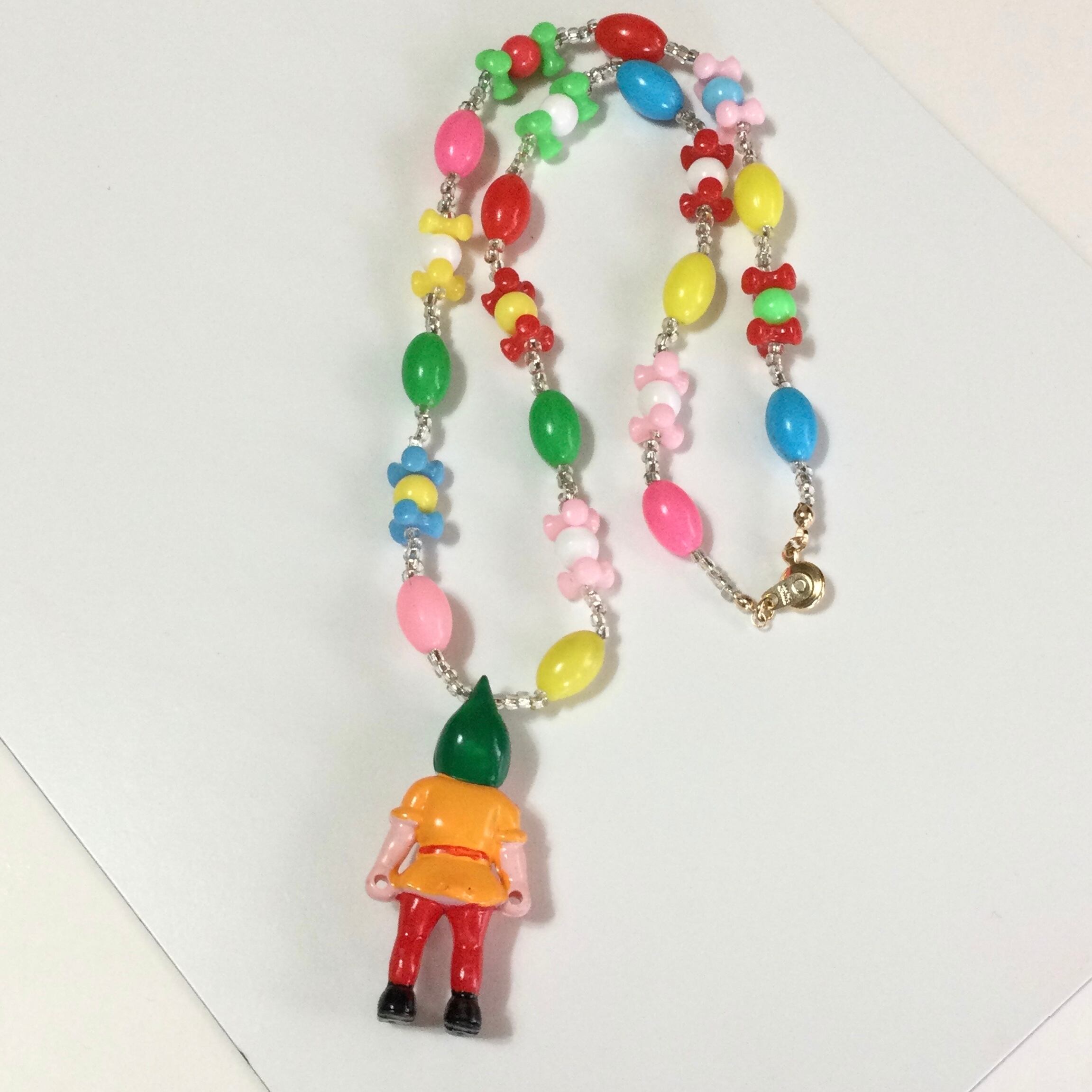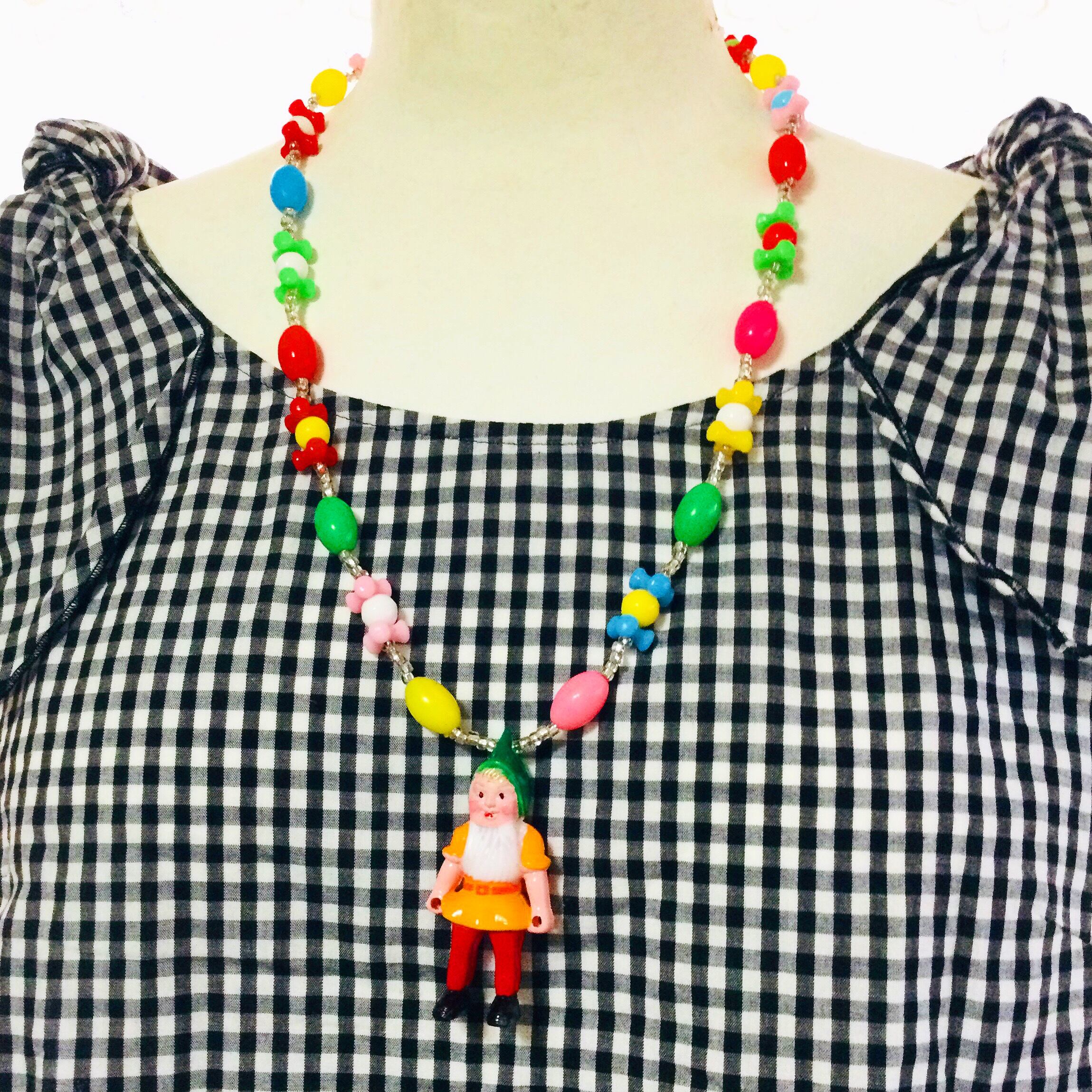 ドワーフさんを中心にカラフルなビーズを繋いだネックレス。