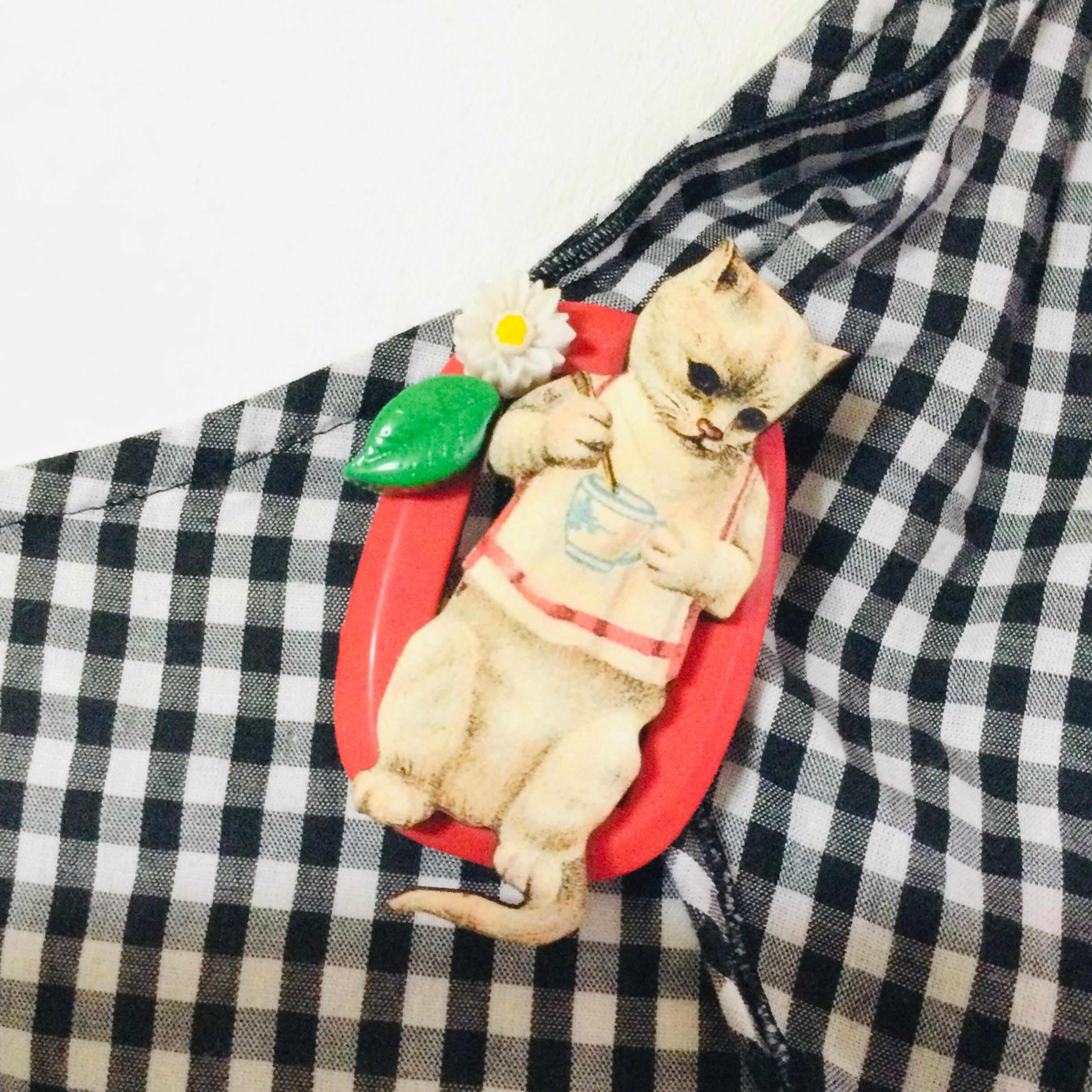 s896 白猫さんとマーガレット ブローチ(帯飾り)