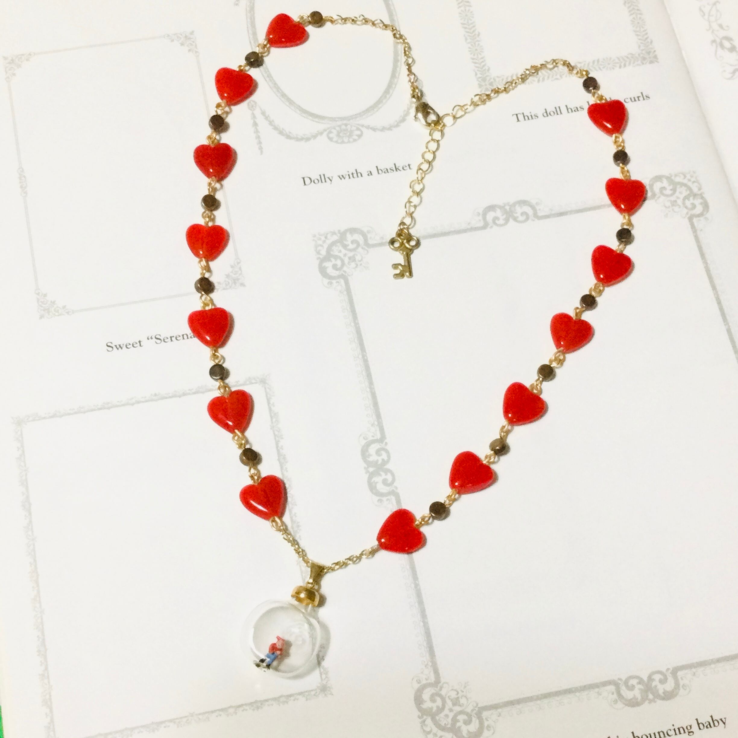 ハート繋ぎですがラブリー過ぎないプチネックレス。質感の良いむかしのプラスチックのビーズを使用してます。