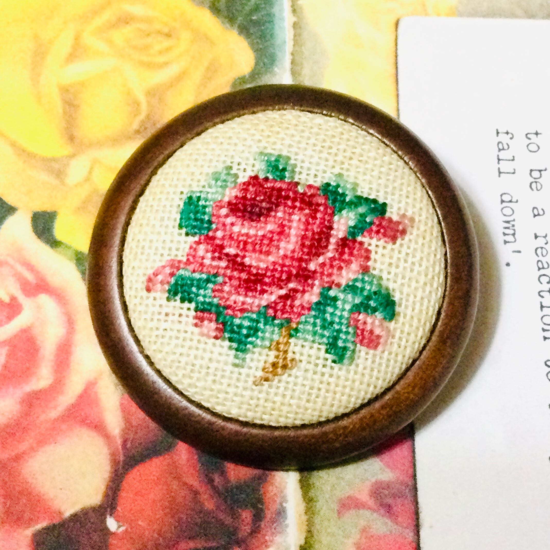 繊細で美しい薔薇の刺繍に木製のフレーム。
