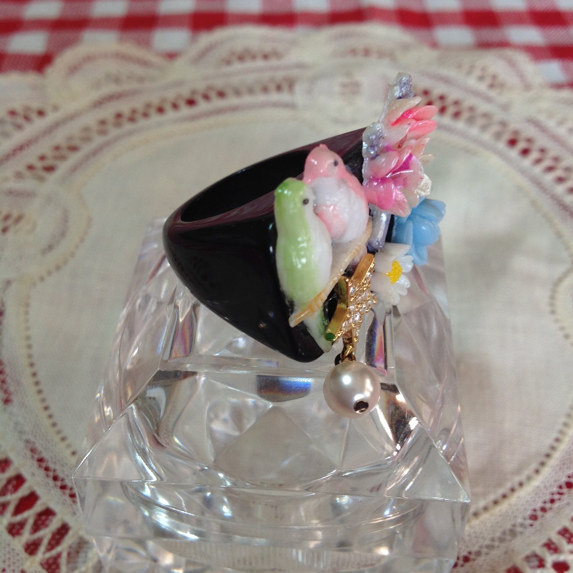 甘く淡い砂糖菓子のようなセルロイド(昔のプラスチック)製の今ではとても貴重なパーツが、たくさんついたゆびわ❤️
