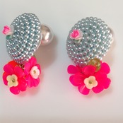 パーッとはなやかなピンク(オレンジのお花が一個だけ)と、淡いブルーの色合わせが、ラヴリー極まりました❤️春色ピアス