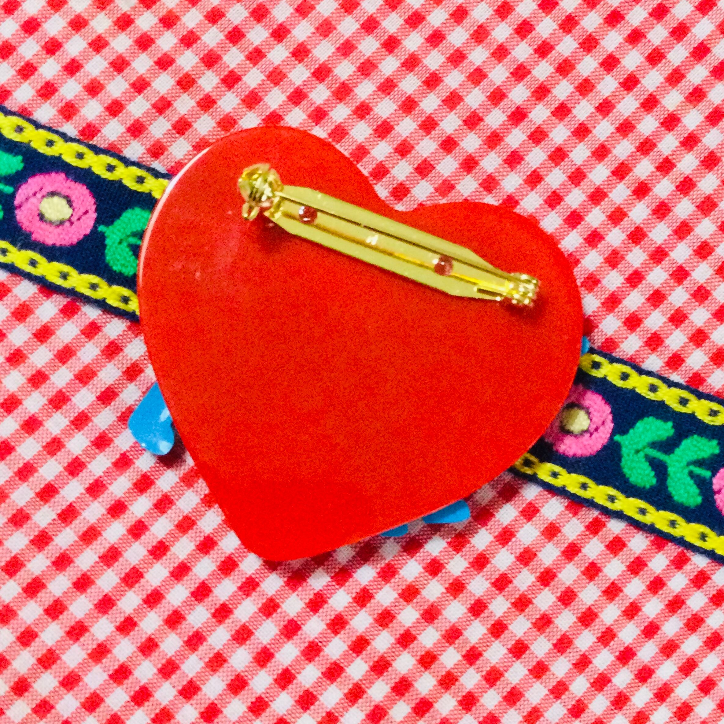 s967 青い犬 ハート型ブローチ(帯飾り)