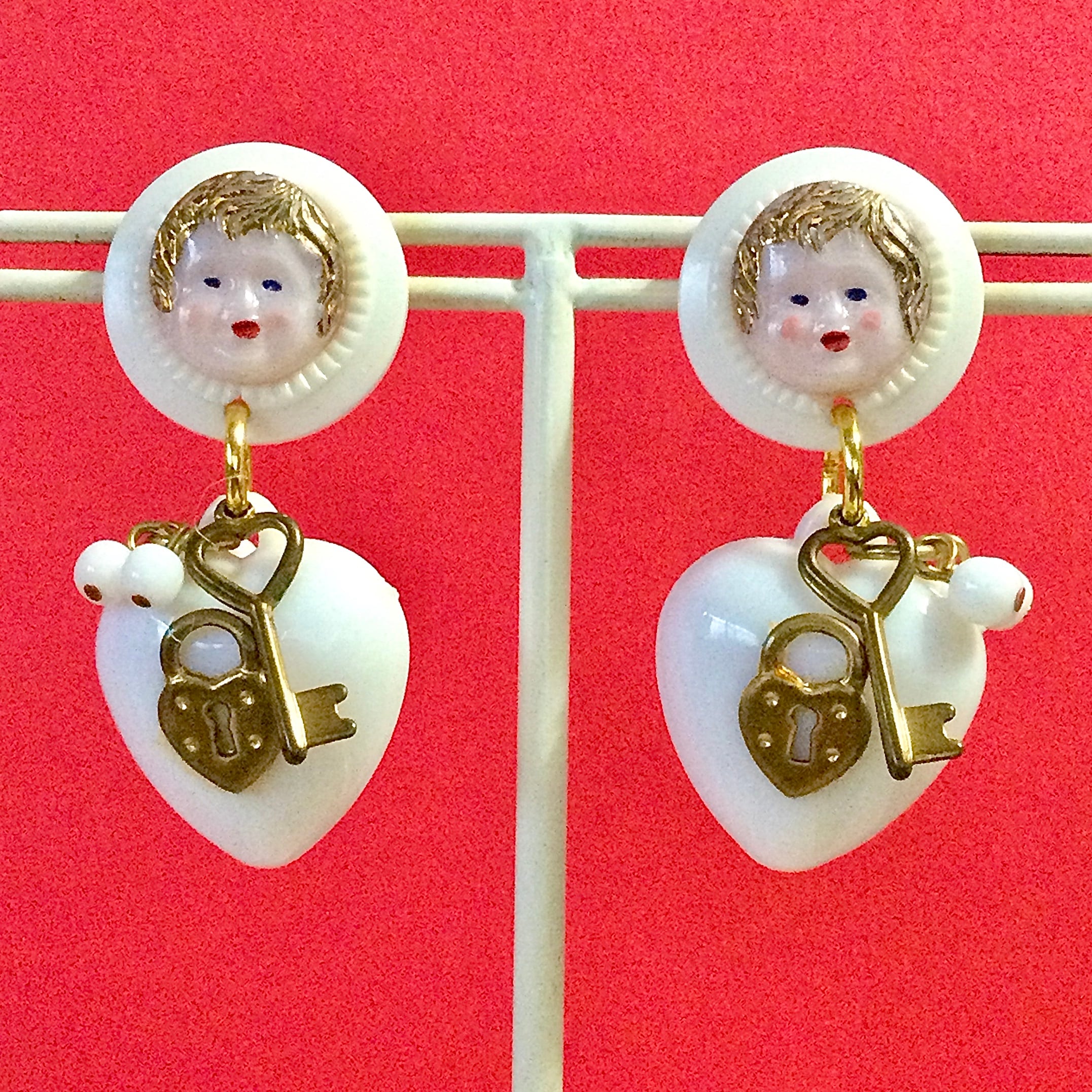 ひみつの白いハートと鍵♡ニコニコさん ピアス