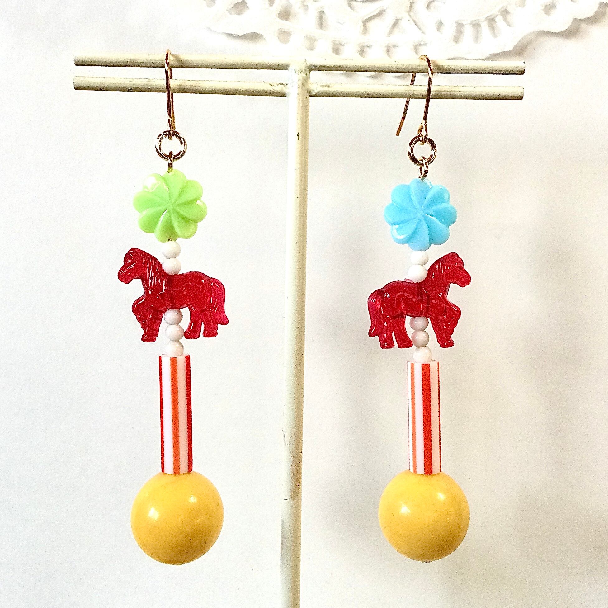 メリーゴーランドの馬たちをイメージしたカラフルなピアス。