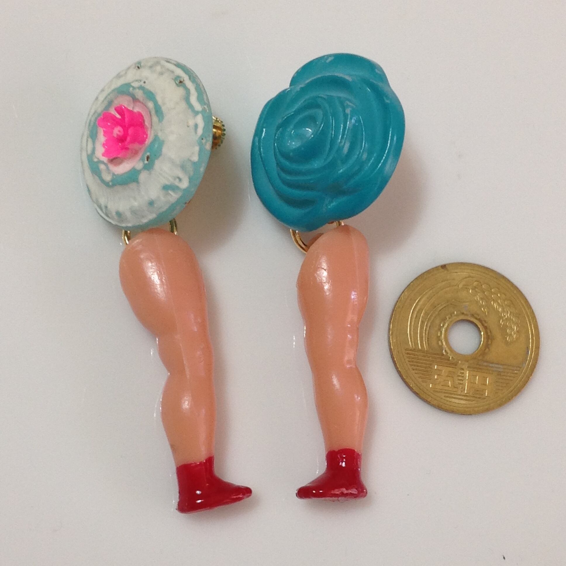 429 お花と赤い靴を履いた足 イヤリング
